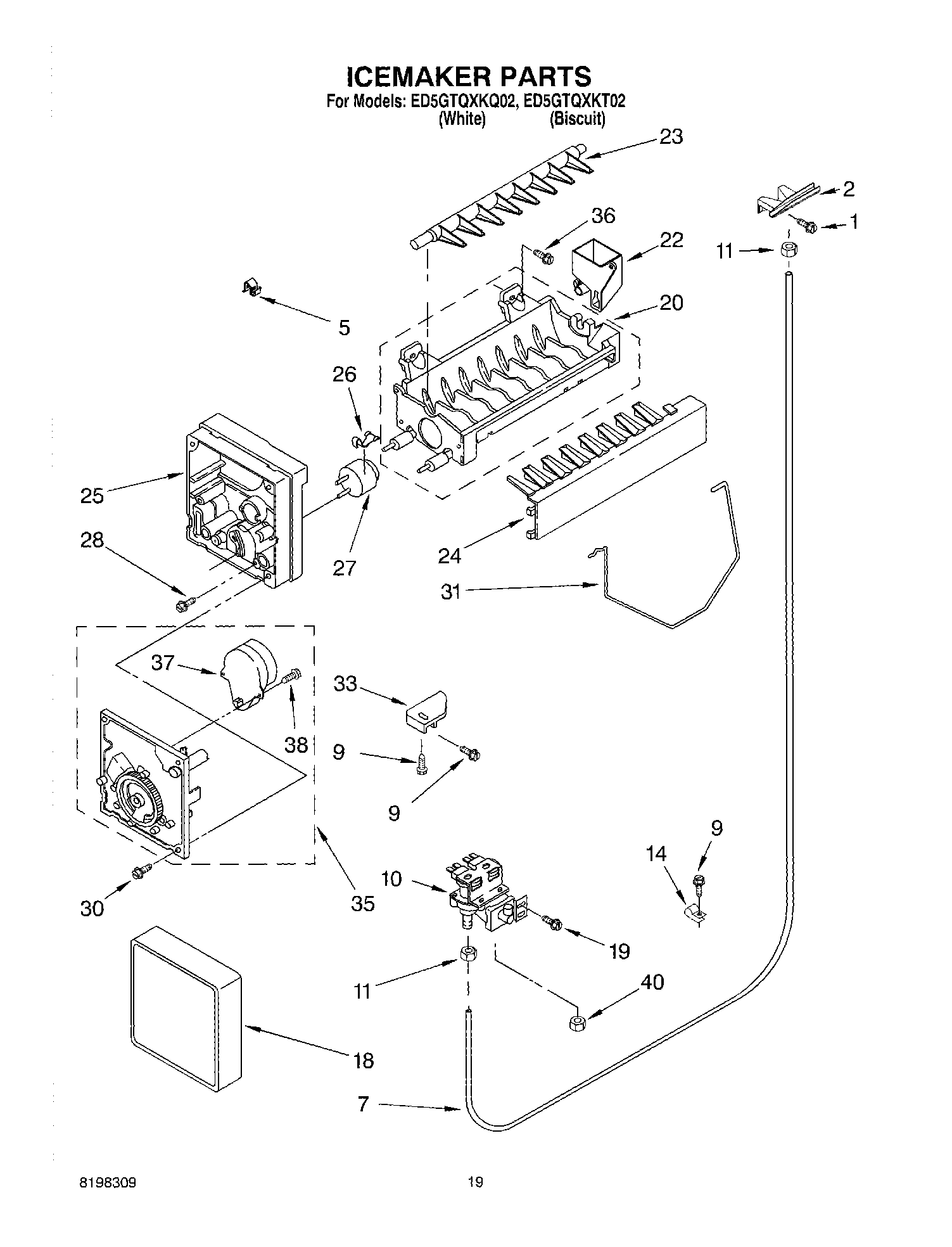 ED5GTQXKT02 12 – ICEMAKER PARTS, PARTS NOT ILLUSTRATED