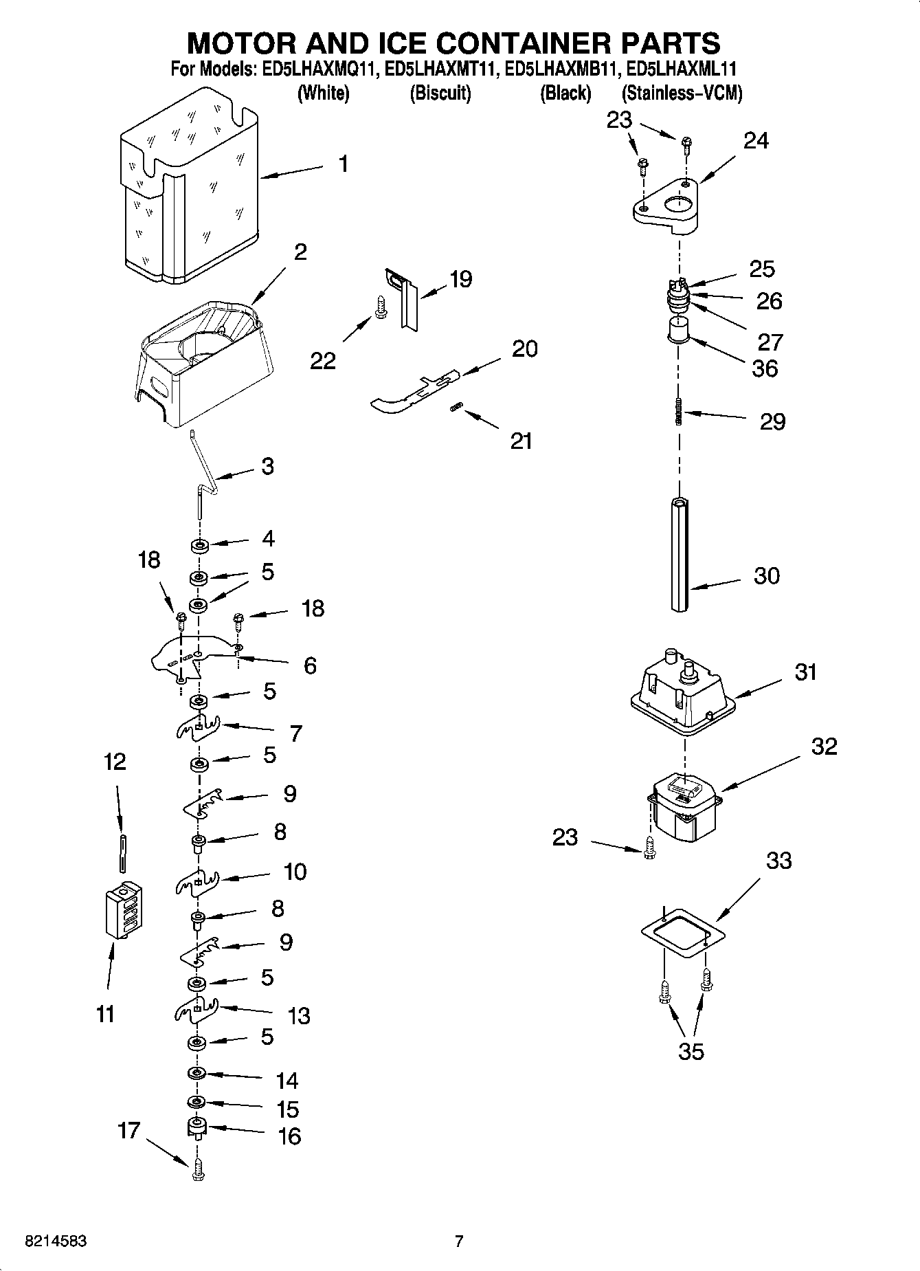 ED5LHAXMB11 05 – MOTOR AND ICE CONTAINER PARTS