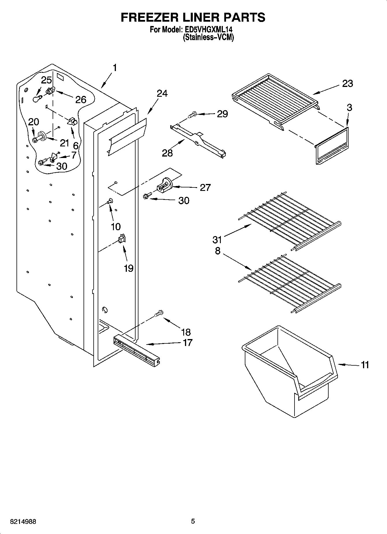 ED5VHGXML14 04 – FREEZER LINER PARTS
