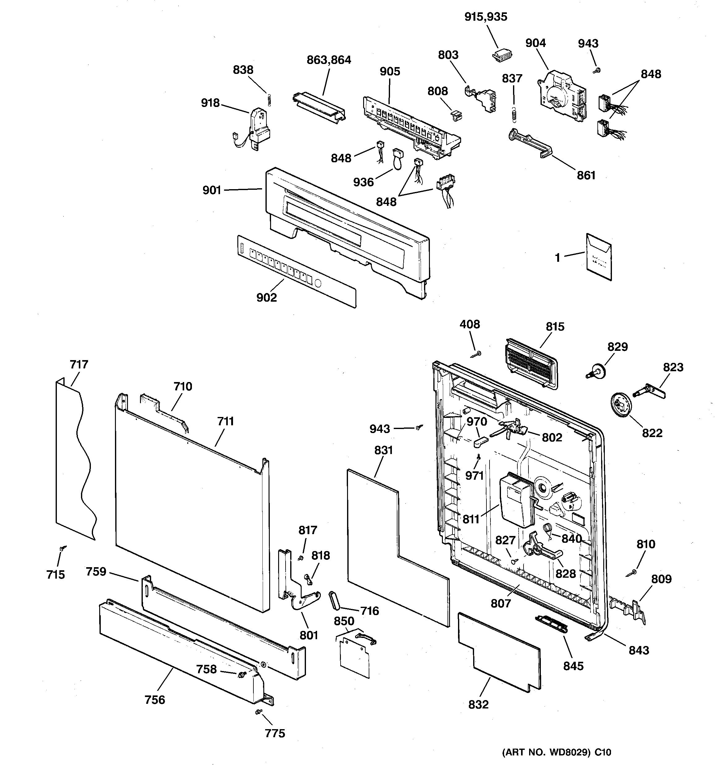 711WD31X10024 GE Dishwasher Black Front Panel