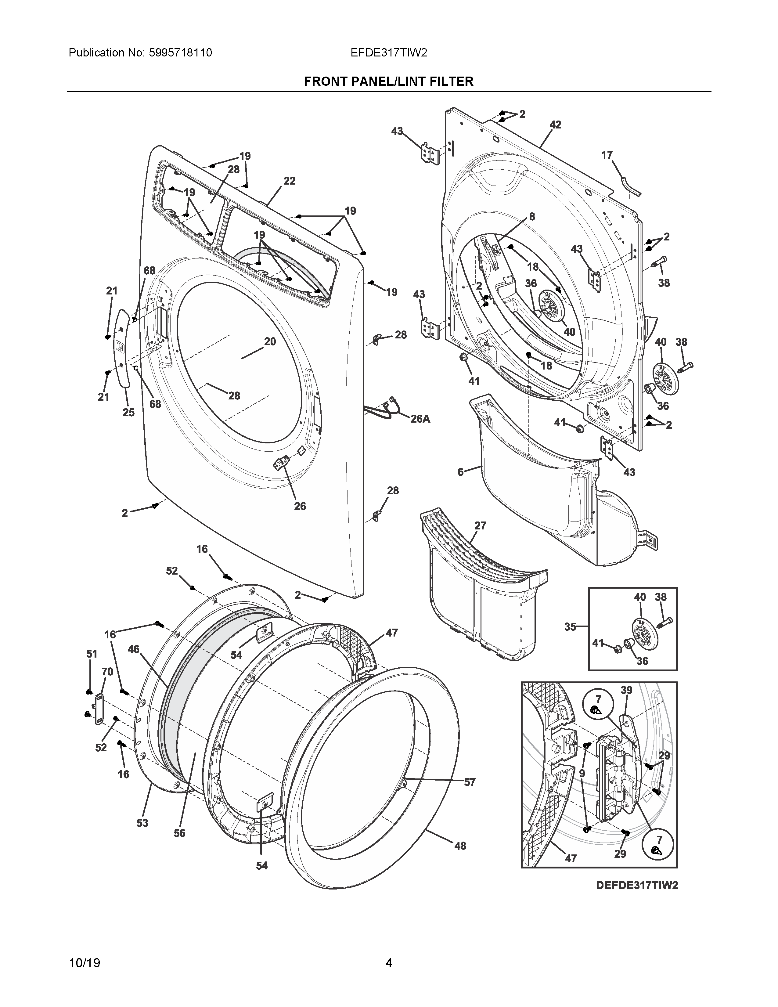 EFDE317TIW2 03 – FRONT PANEL/LINT FILTER