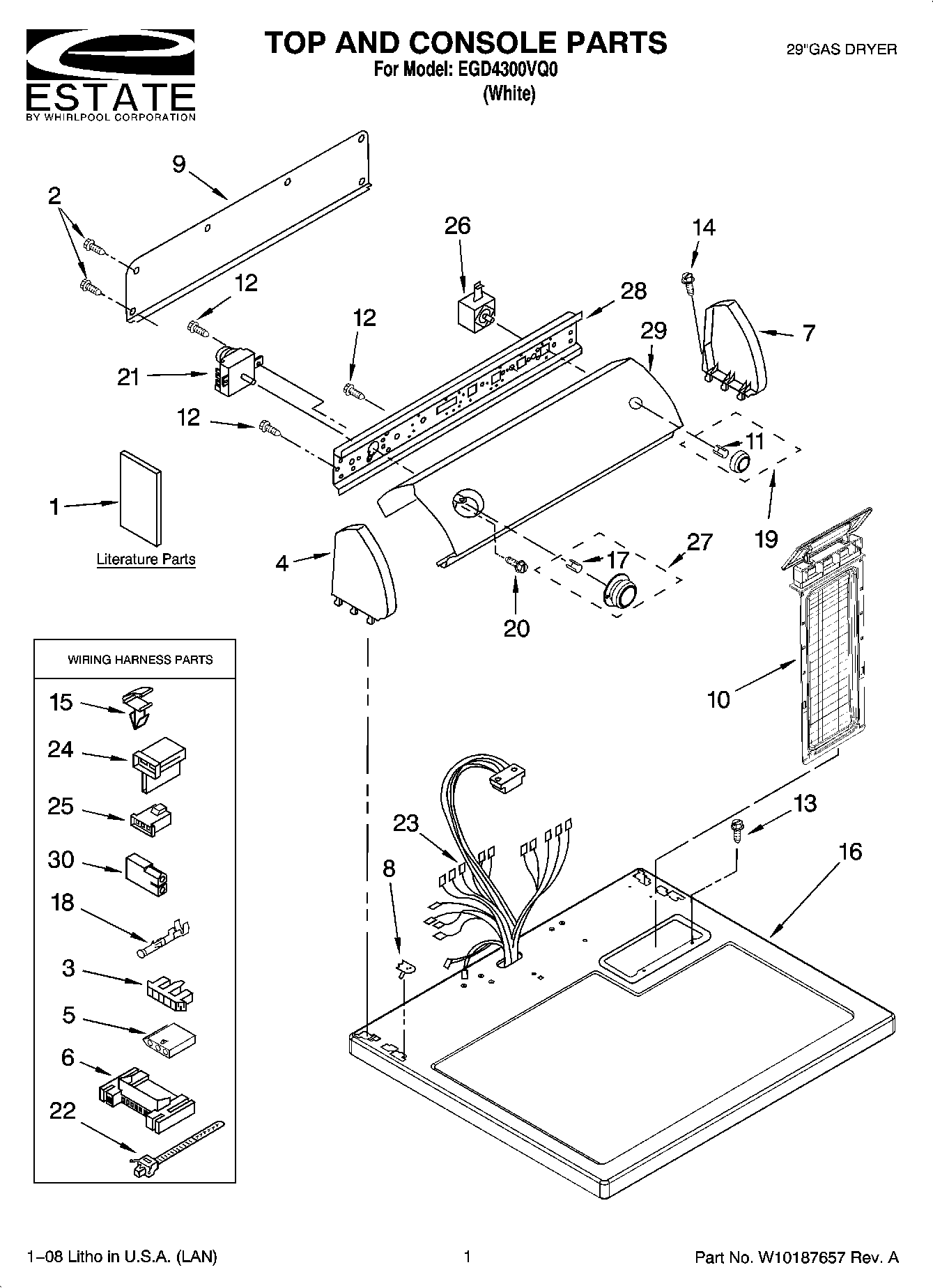 EGD4300VQ0 01 – TOP AND CONSOLE PARTS
