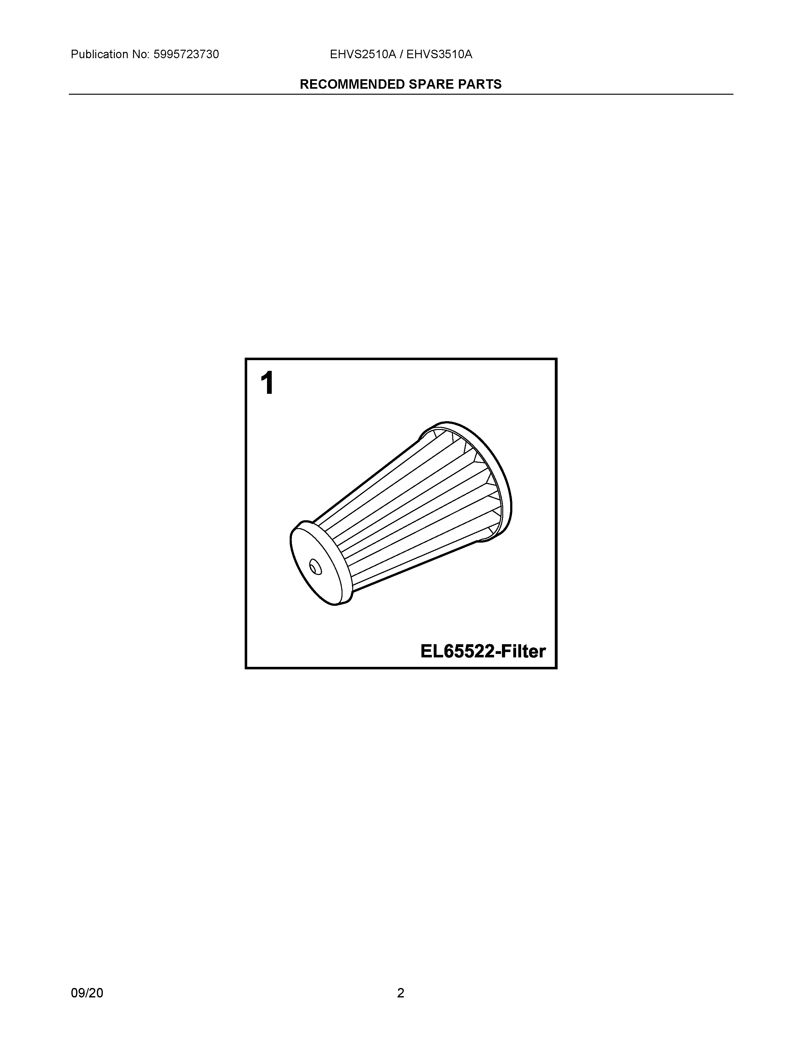 EHVS2510AW 02 – RECOMMENDED SPARE PARTS