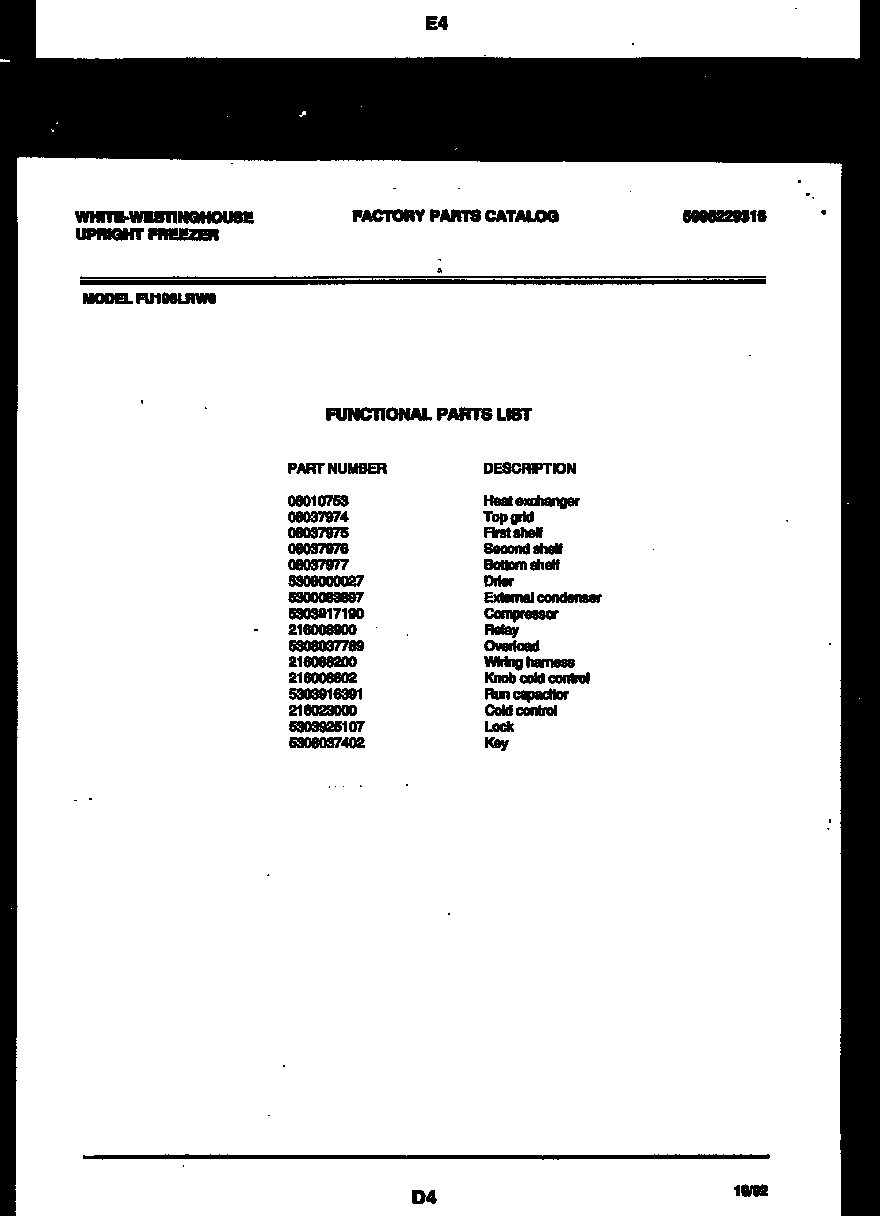 FC206LTW5 02 – CHEST FREEZER PARTS
