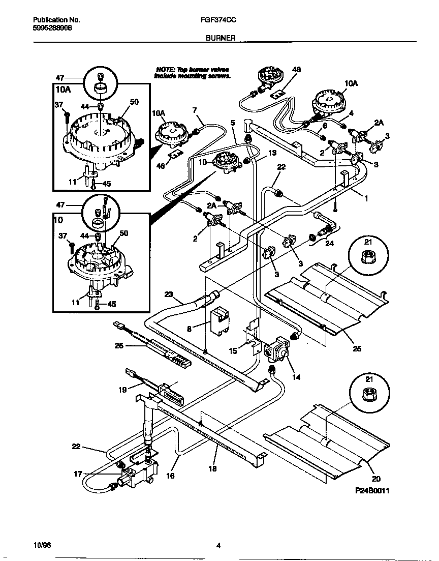 BURNER ASSY-TOP, SEALED, (4), INCLUDES, 11, 37, 44, 45,