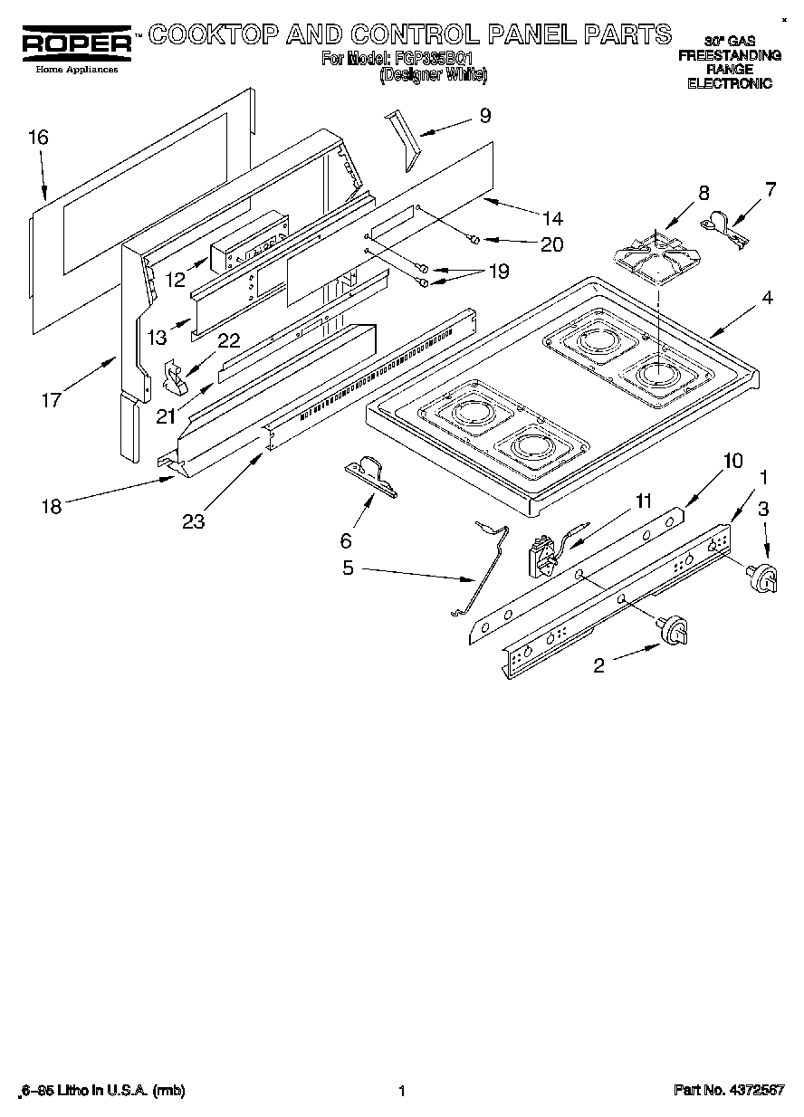 FGP335BQ1 01 – COOKTOP AND CONTROL PANEL, LITERATURE