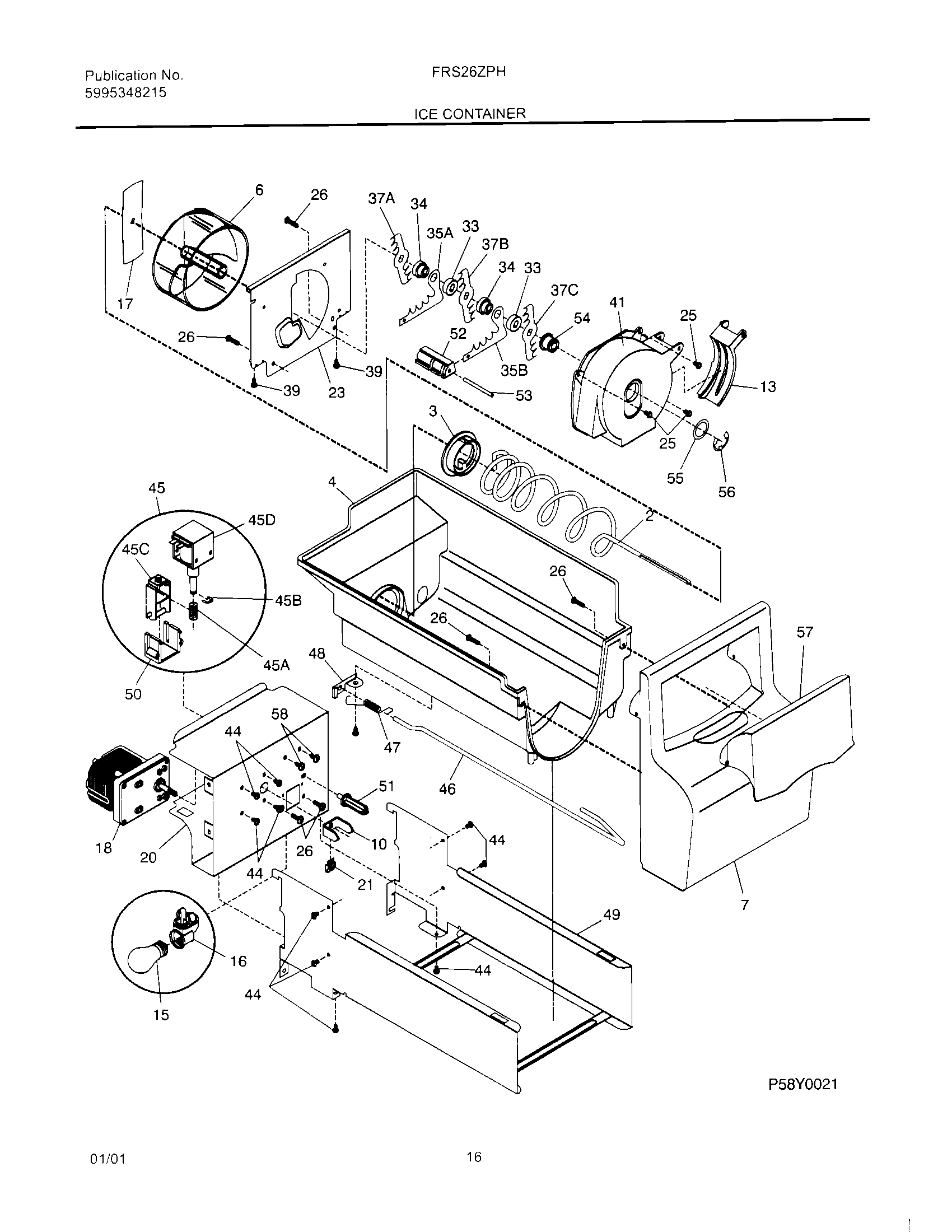 241716101 Frigidaire Refrigerator Ice Auger