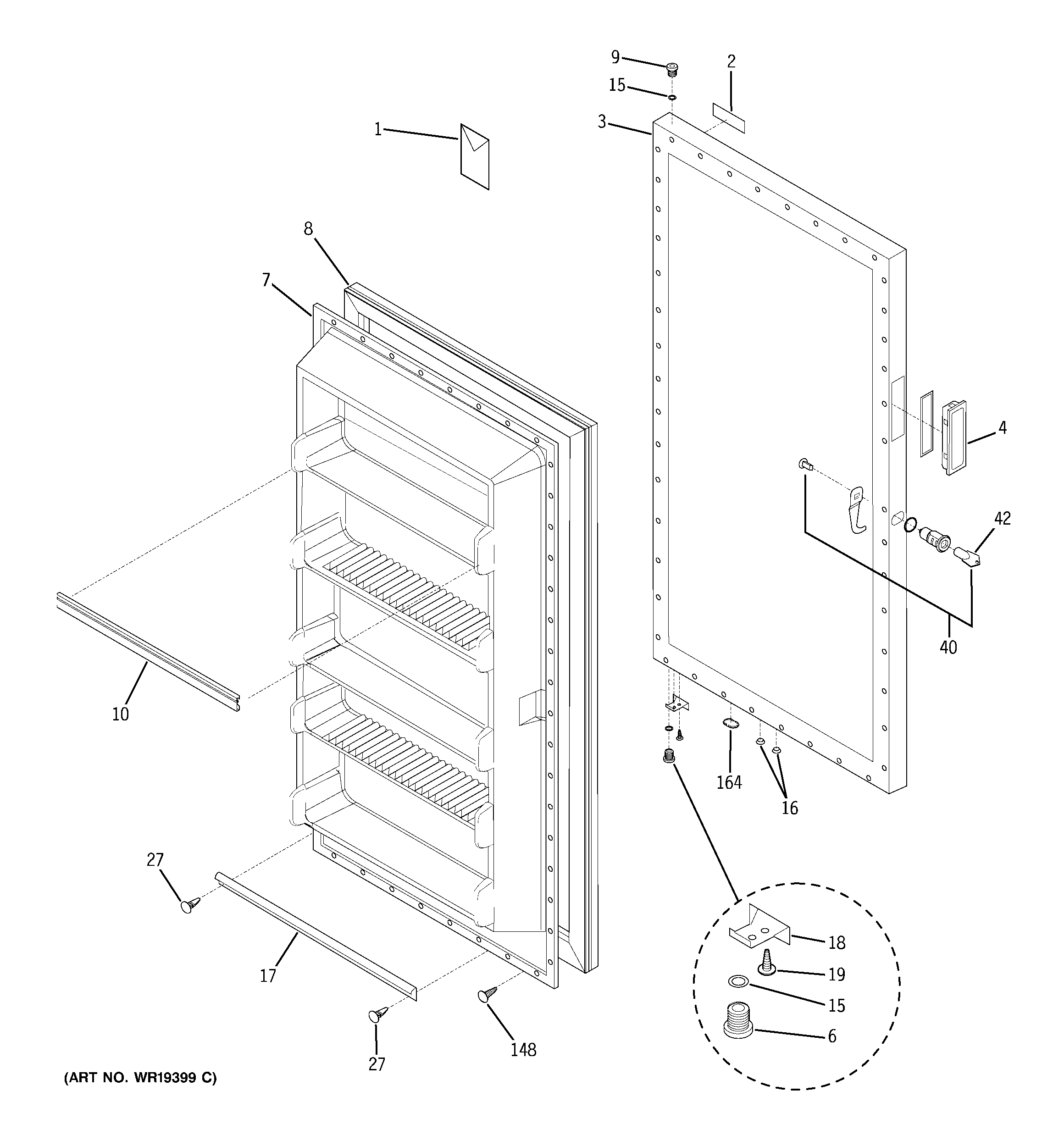 FUM14DPARWH FREEZER DOOR