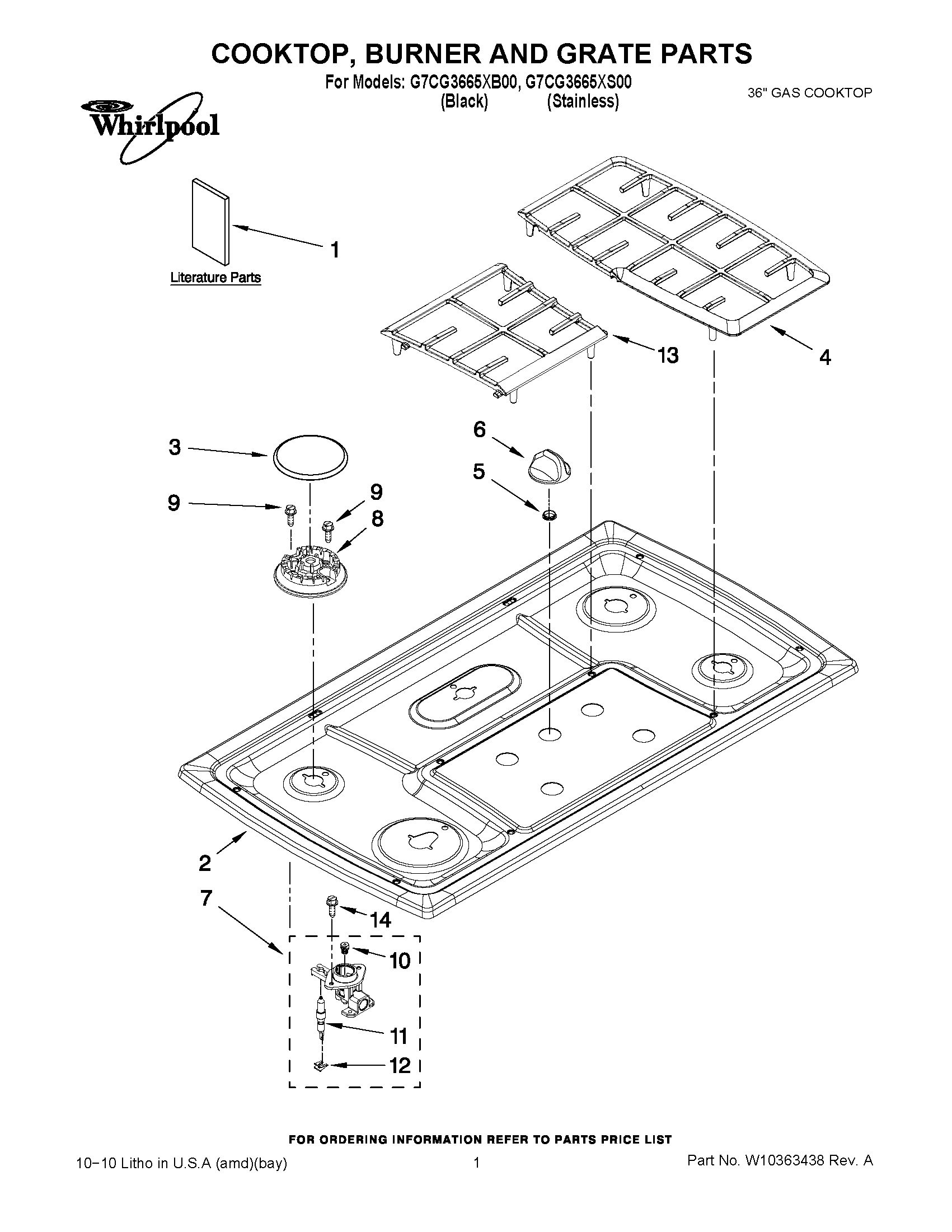 G7CG3665XS00 01 – COOKTOP, BURNER AND GRATE PARTS