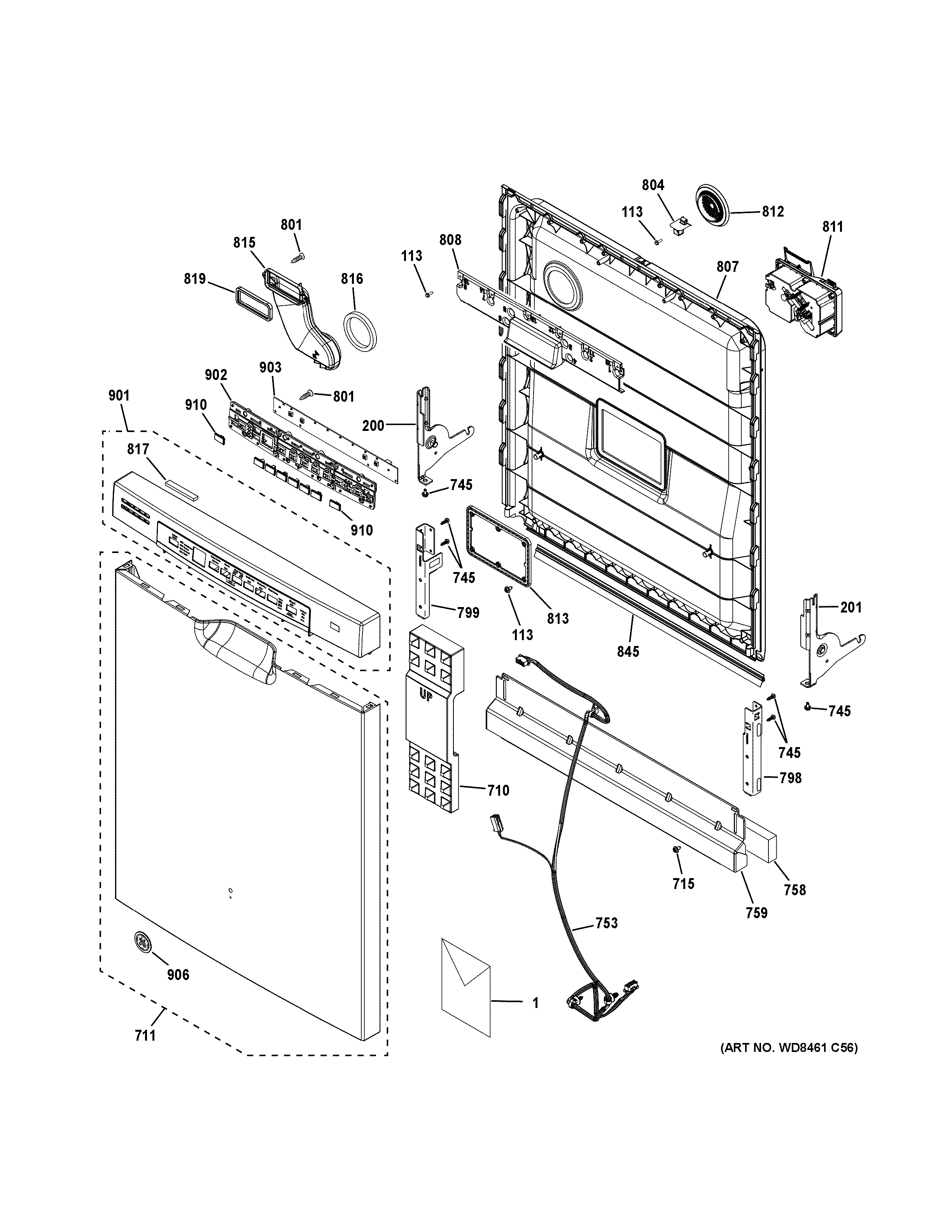 GDF630PGM0WW ESCUTCHEON & DOOR ASSEMBLY