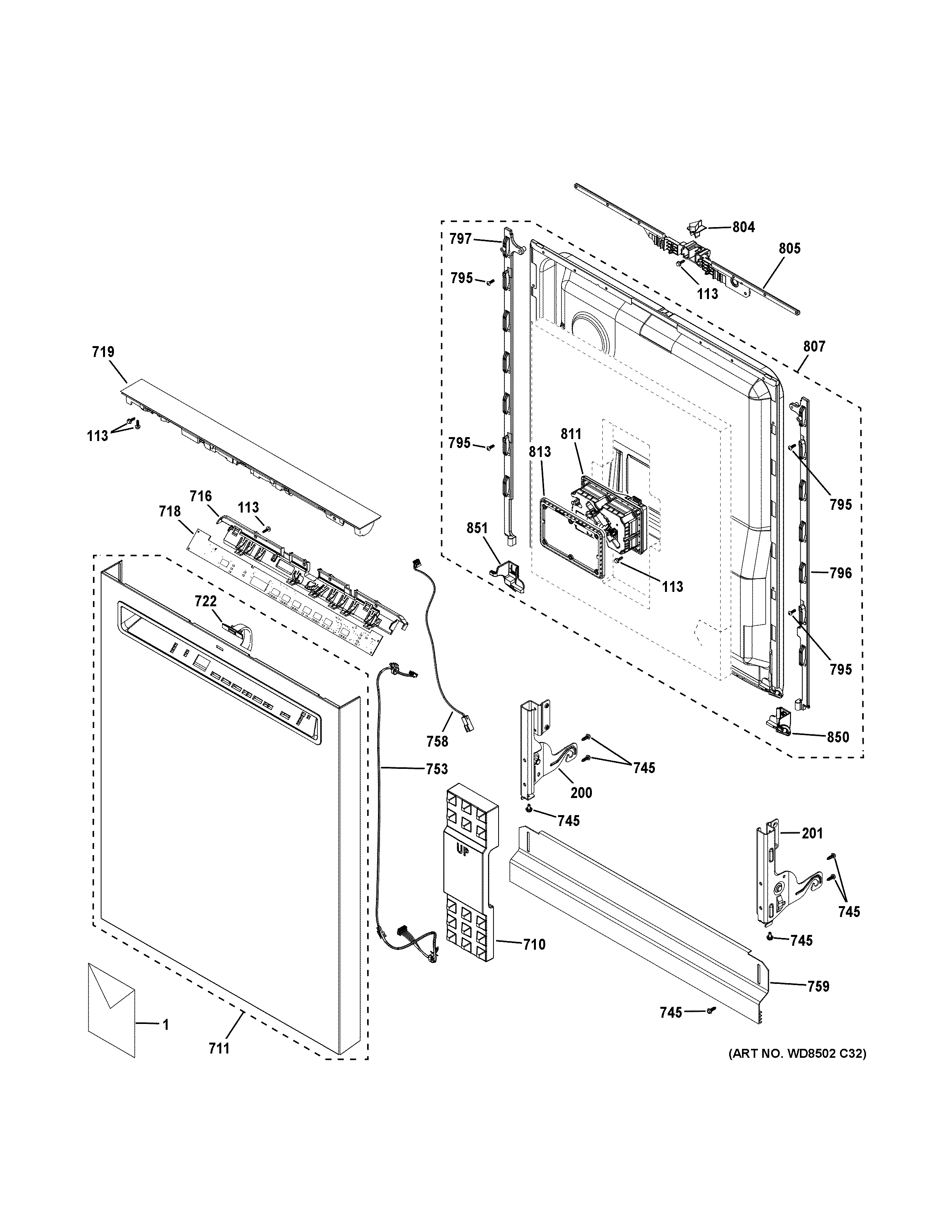 GDF650SMV1ES ESCUTCHEON & DOOR ASSEMBLY