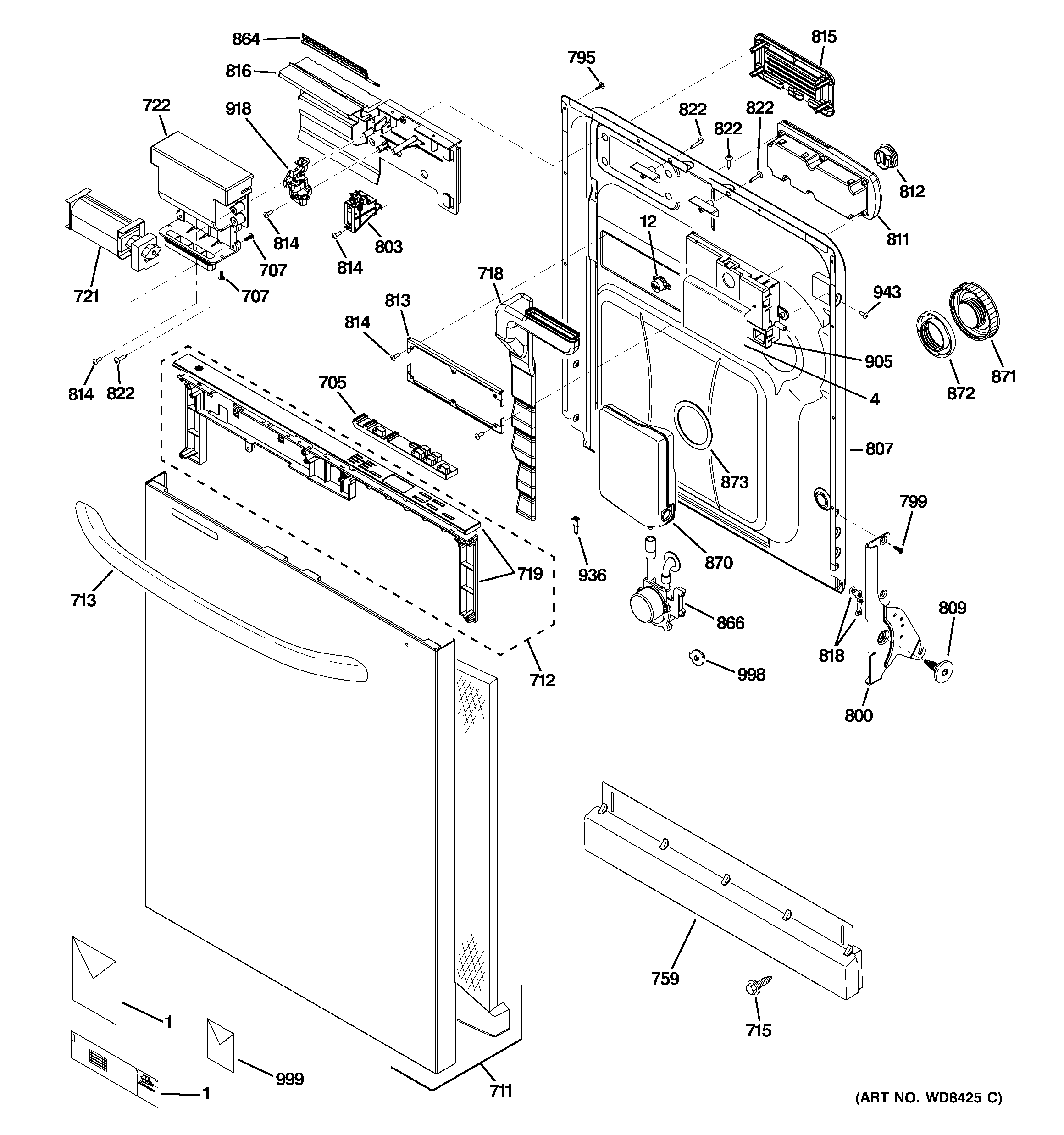 GDWT708V00BB ESCUTCHEON & DOOR ASSEMBLY