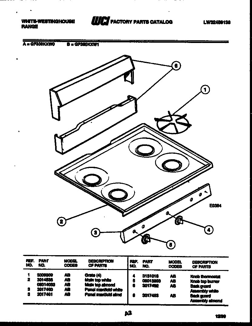 GF300KXD0 02 – BACKGUARD AND COOKTOP PARTS