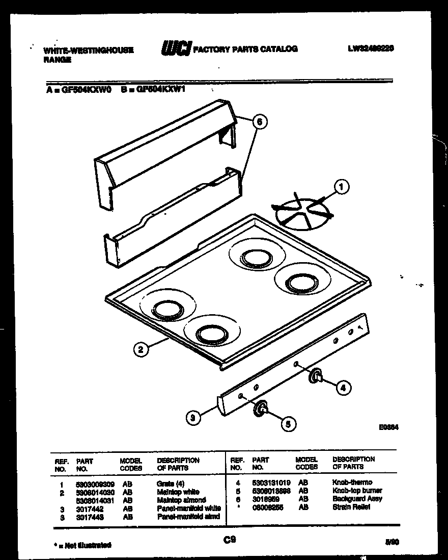 GF504KXD1 02 – COOKTOP PARTS AND BACKGUARD
