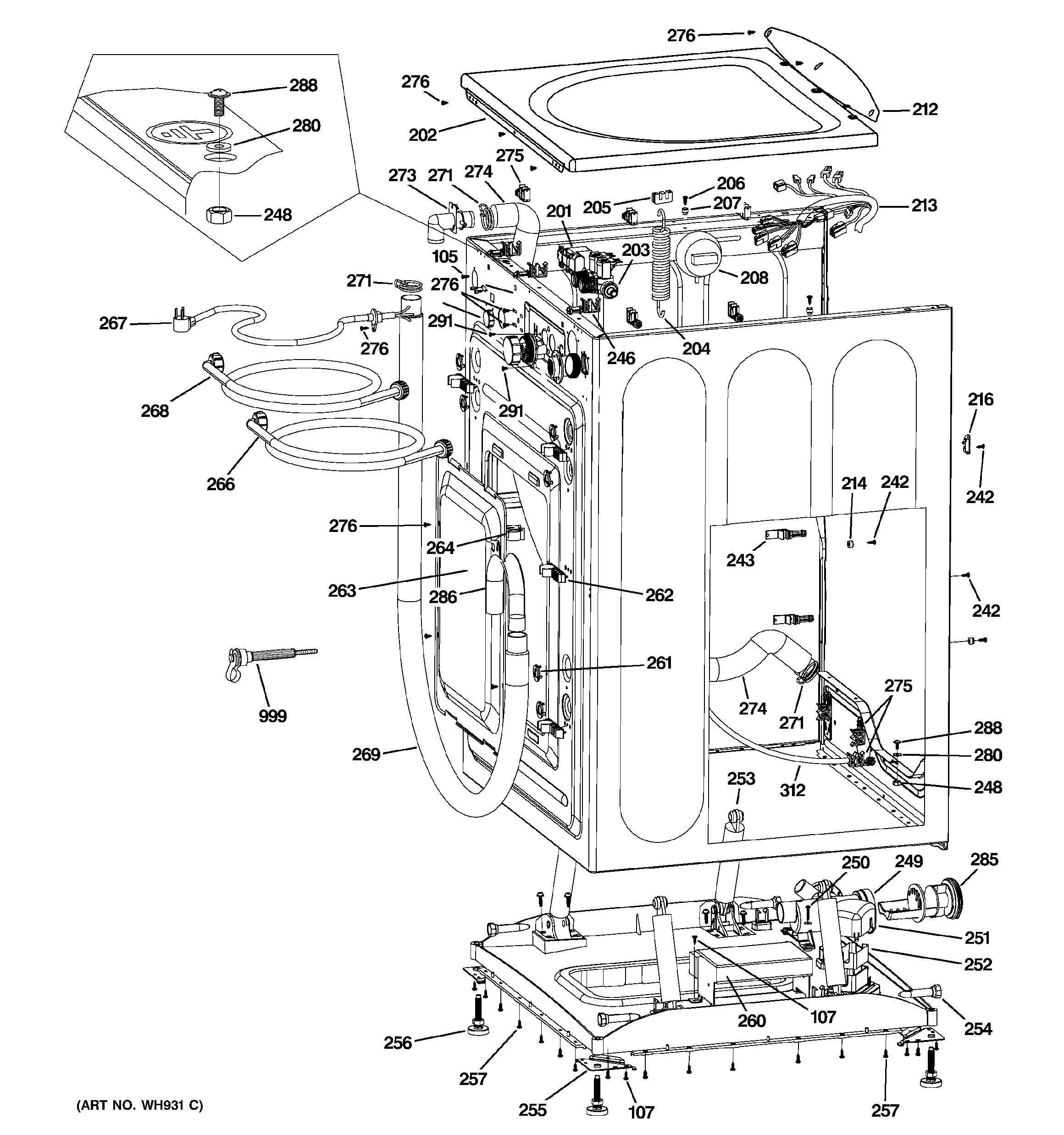 GFWN1000L0WW CABINET & TOP PANEL