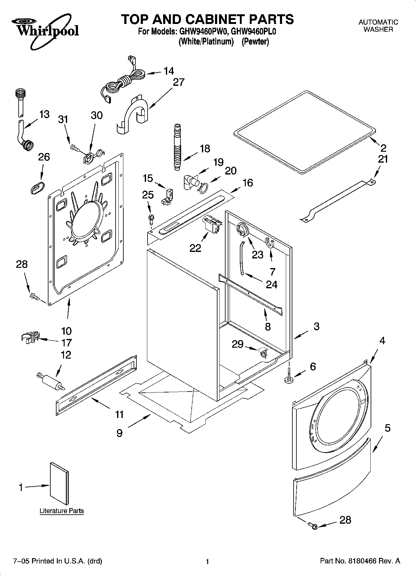 GHW9460PL0 01 – TOP AND CABINET PARTS
