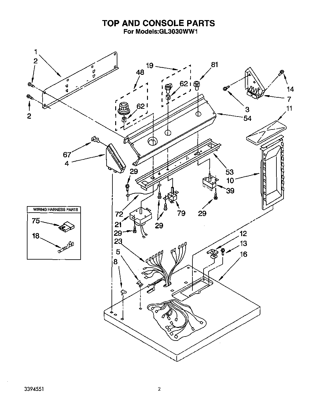 GL3030WW1 02 – TOP AND CONSOLE, LIT/OPTIONAL