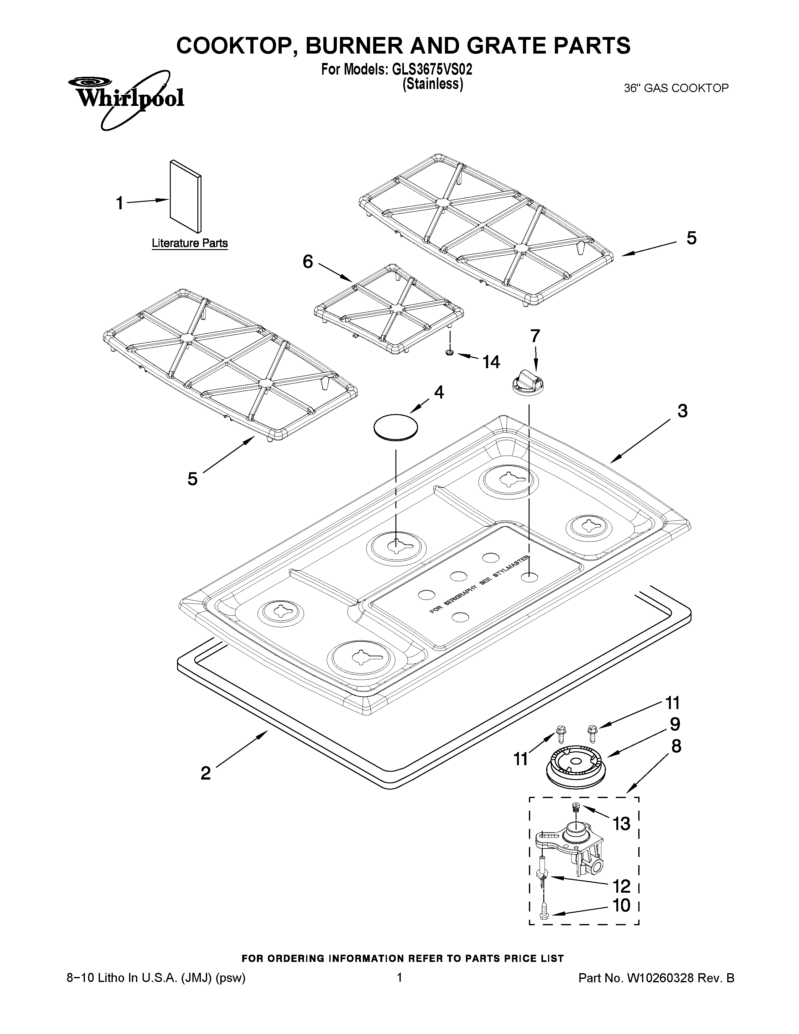 GLS3675VS02 01 – COOKTOP, BURNER AND GRATE PARTS