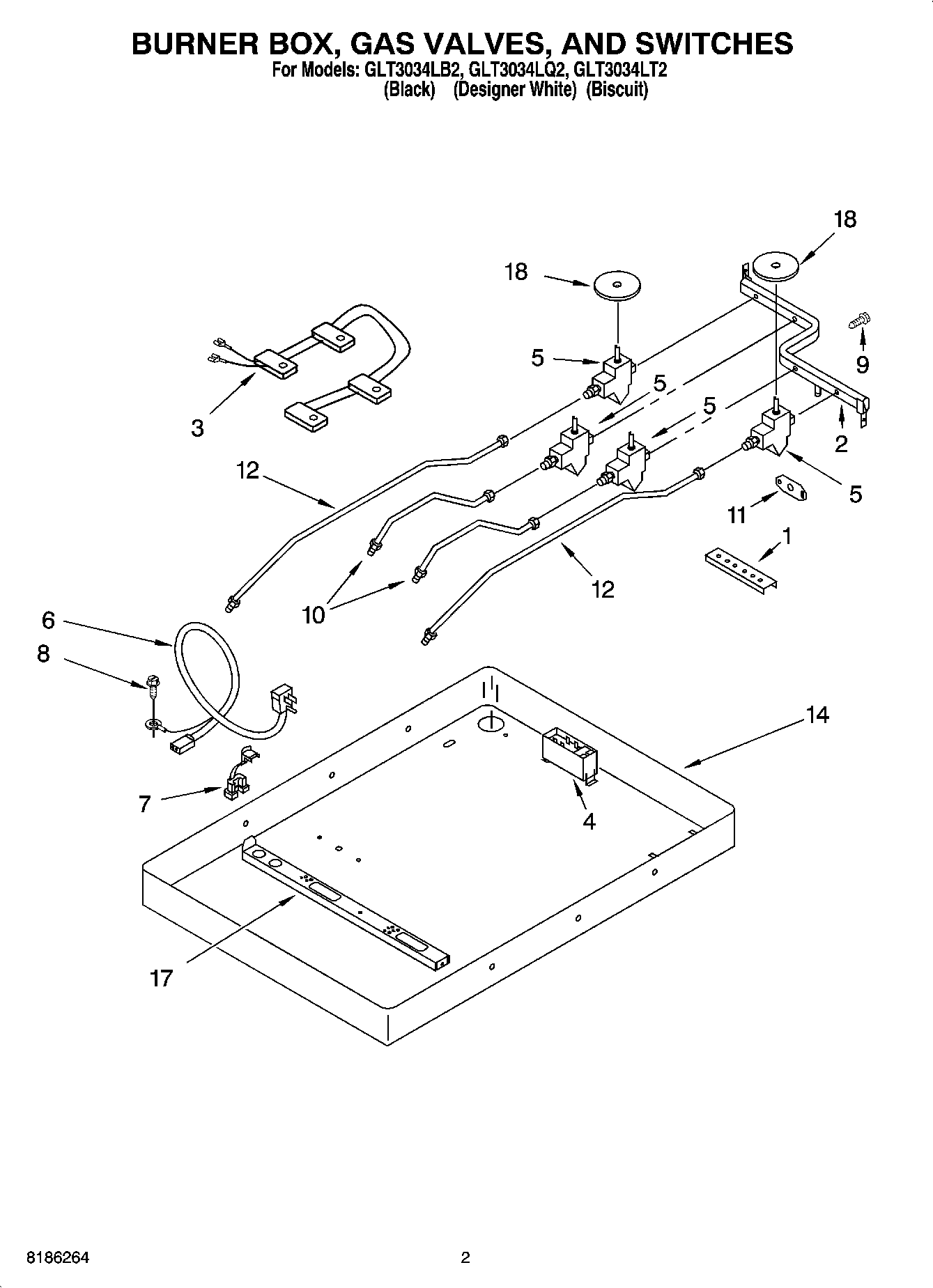 GLT3034LT2 02 – BURNER BOX, GAS VALVES, AND SWITCHES
