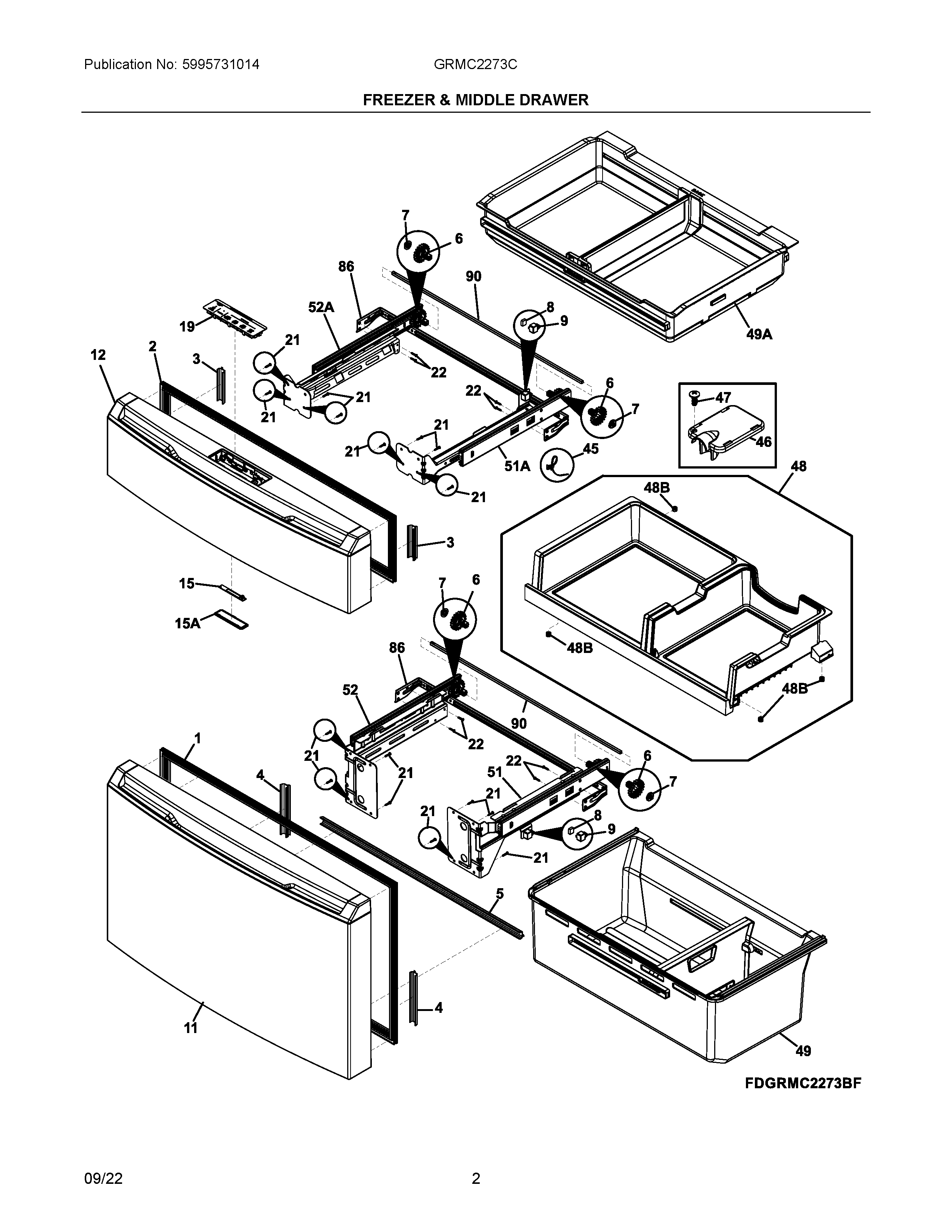 GRMC2273CF00 02 – FREEZER & MIDDLE DRAWER