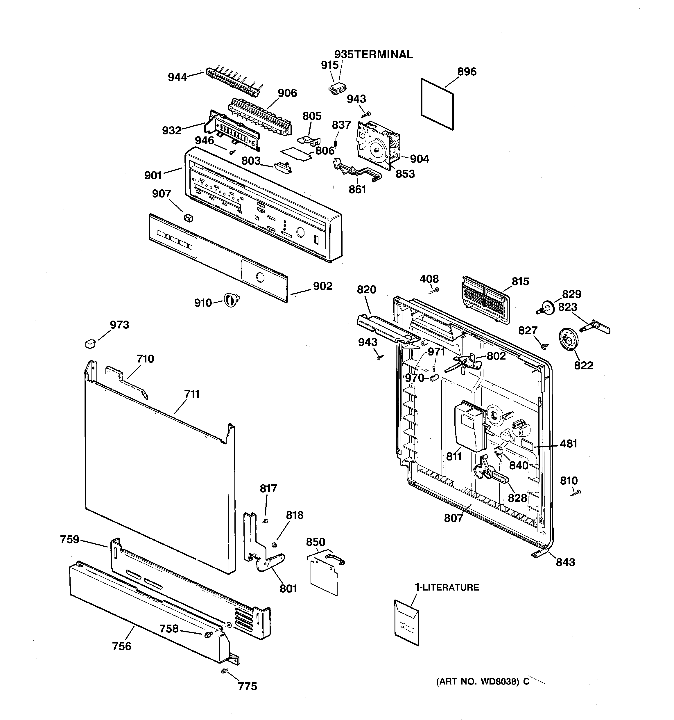 GSD3630Z00WW ESCUTCHEON & DOOR ASSEMBLYadmin2025-04-26T08:43:41+00:00GSD3630Z00WW ESCUTCHEON & DOOR ASSEMBLY ProductsPositionProduct1GEN 31-30891GEN 49-58191GEN 31-30130408GEN WD02X0296481GEN WD01X10016710GEN WD01X10019711PANEL FRONT756WD27X10225 GE Dishwasher Finished Access Panel758WD2X323D GE Dishwasher Screw Package759TOEKICK ASM775SCREW 10-16X5/8 HXP WH775WD2X5166 GE Dishwasher Screw801GEN WD14X10001801ARM HINGE COMPLETE - RH802GEN WD13X0069803WD21X10261 GE Dishwasher Interlock Switch805WD1X1363 GE Dishwasher Leaf Switch806WD12X22757 GE Dishwasher Switch Shield807WD31X10004 GE Door Inner Panel810WD2X322 GE Dishwasher Screw 8-18 x 7/8811WD35X10346 GE Dishwasher Rinse Aid Tank Kit815WD12X10026 GE Dishwasher Vent Assembly817WD1X550 GE Dishwasher Screw818GEN WD12X0231820WD1X1467 GE Dishwasher Vent Pad822WD16X297 GE Dishwasher Detachable Cup Cover823WD16X313 GE Dishwasher Detergent Cup Shaft827GEN WD02X0425828WD16X10011 GE Dishwasher Detergent Dispenser Arm829WD12X10284 GE Dishwasher Fill Cap837GEN WD03X0749840WD3X764 GE Dishwasher Detergent Door Spring843WD08X10016 GE Dishwasher Door Gasket850GEN WD12X0338853GEN WD16X10001861WD12X324 GE Dishwasher Lever896WD31X10141 GE Dishwasher Timer Cover901GEN WD34X10067901GEN WD34X10065902GEN WD34X10066904GEN WD21X10020906GEN WD09X10011907GEN WD09X0350910WD9X353 GE Dishwasher Timer Knob915GEN WD01X1432932GEN WD12X0434935GEN WD01X1434943WZ5X219D GE Screw Package944GEN WD06X0236946GEN WD01X10020946GEN WD02X0436970WD9X352 GE Dishwasher HN Latch Knob971GEN WZ02X0045973GEN WD12X10017