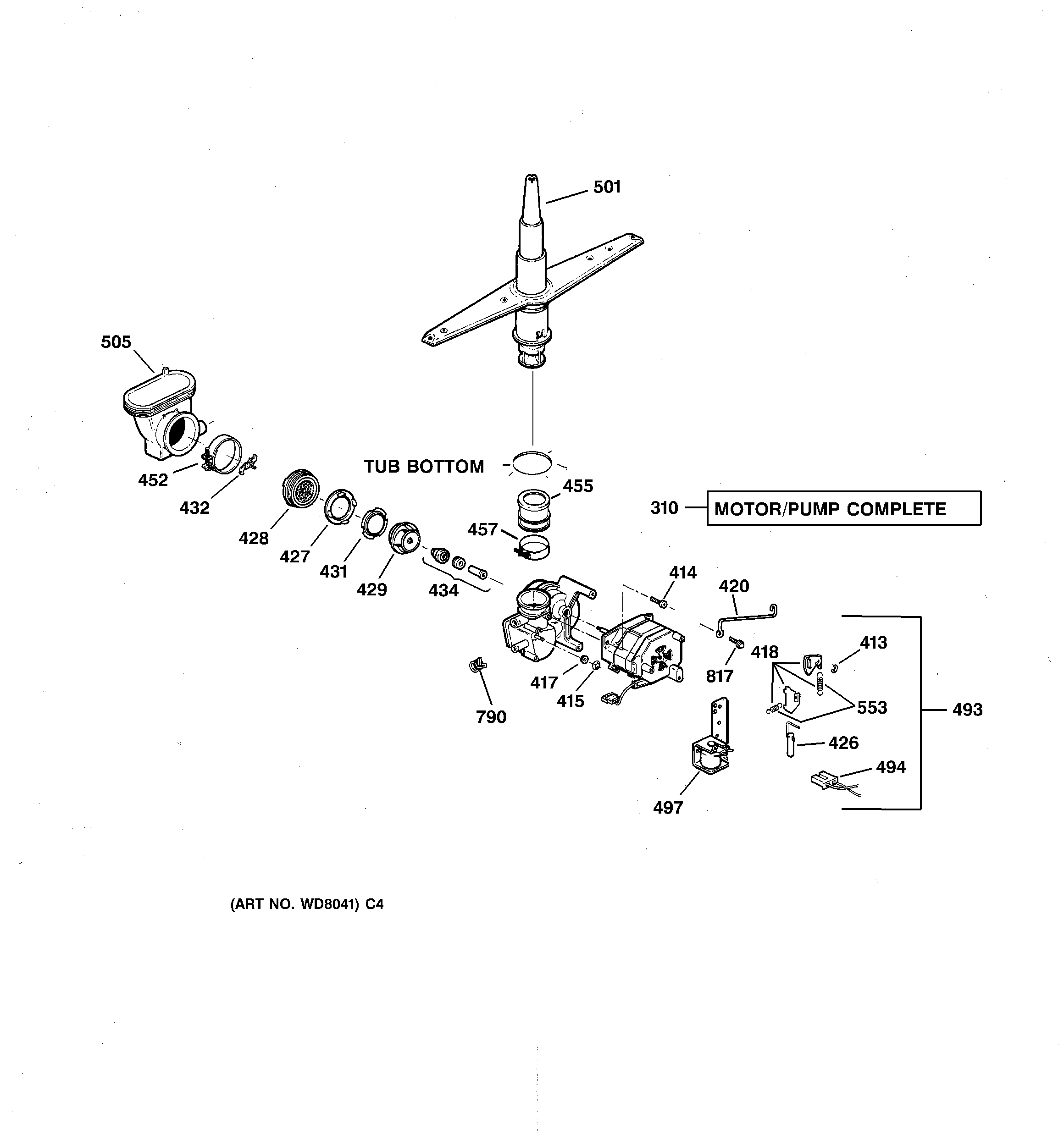 WD22X155 GE Dishwasher Spray Arm with Hub & Tower