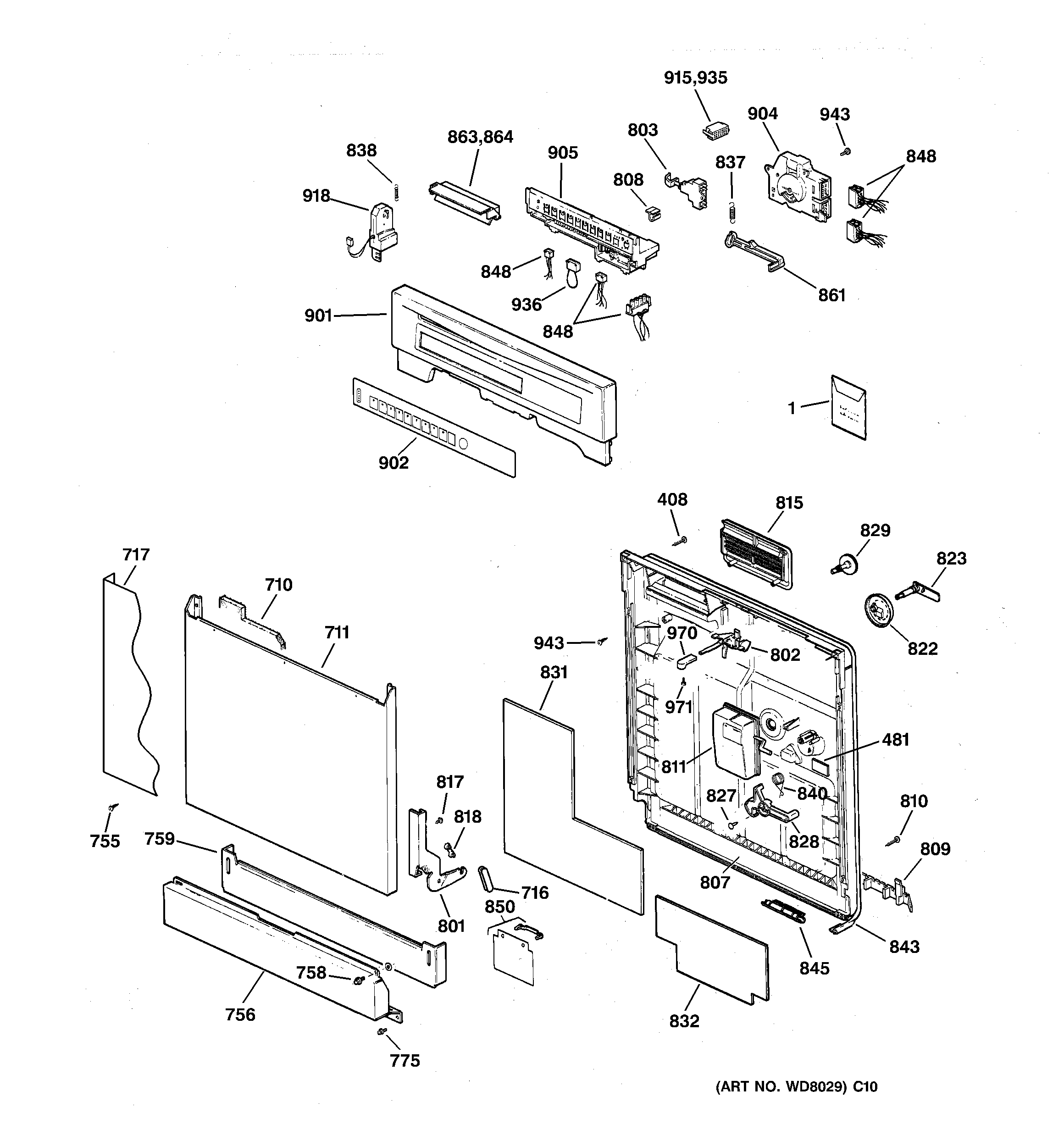 WD31X10024 GE Dishwasher Black Front Panel