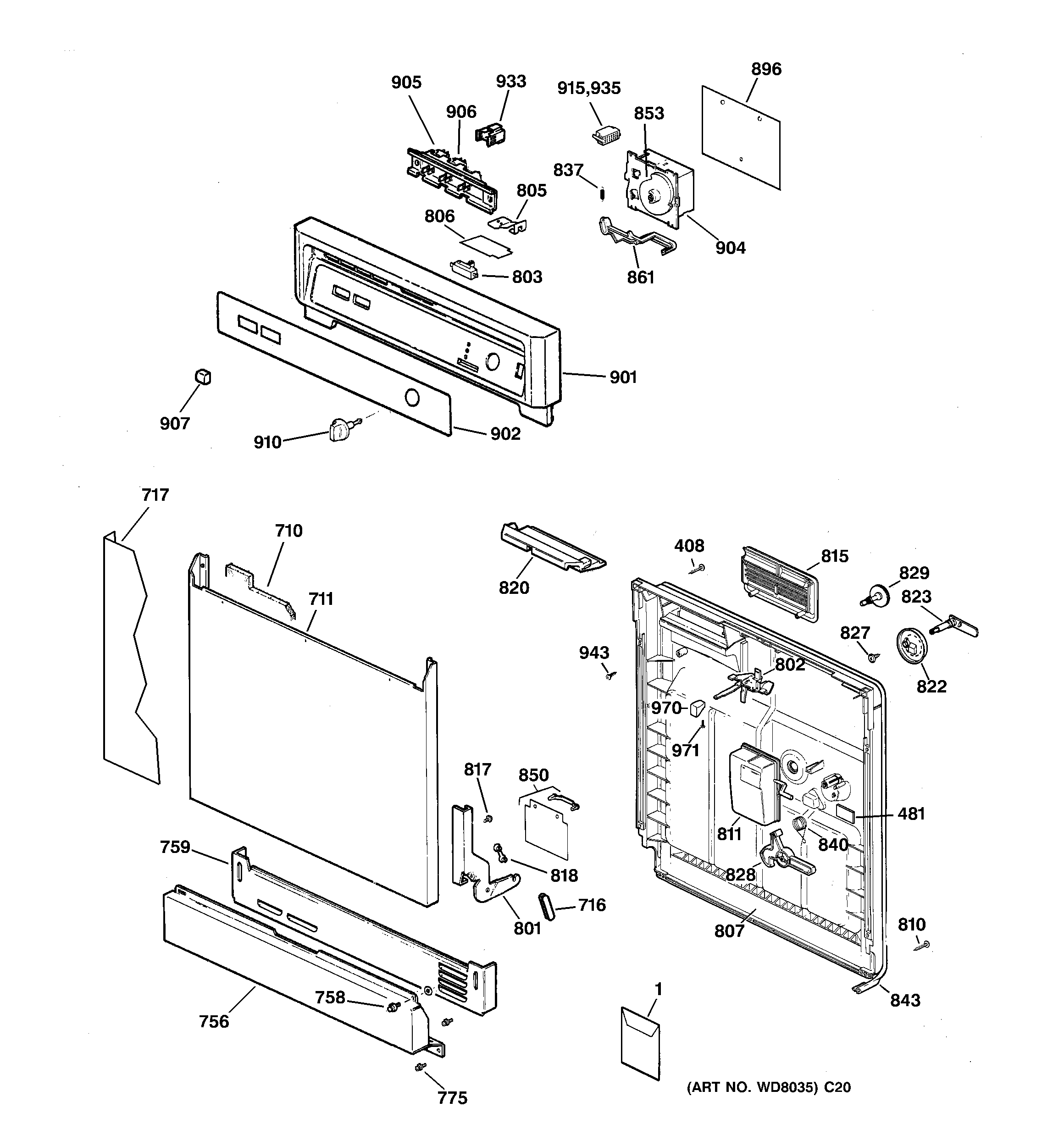 GSM2100ZZ3WH ESCUTCHEON & DOOR ASSEMBLY