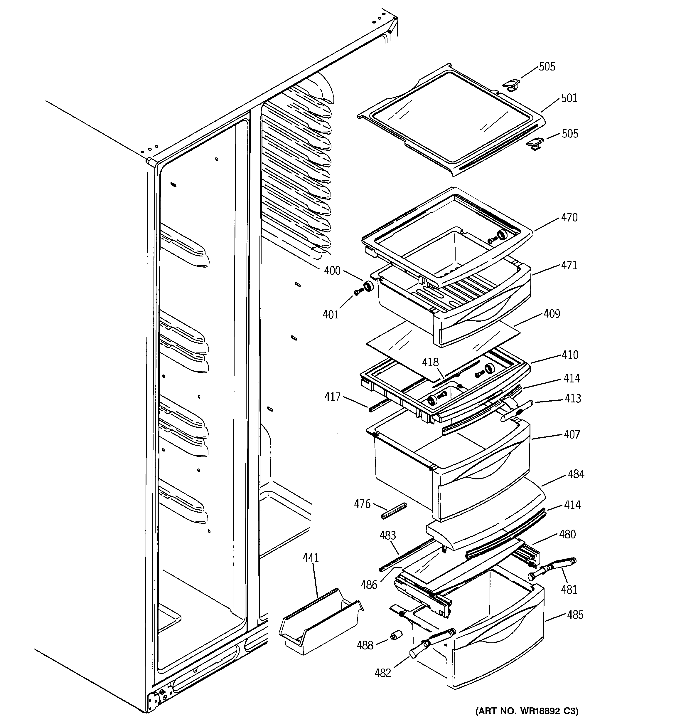 WR71X10582 GE Refrigerator Shelf Slideout Assembly