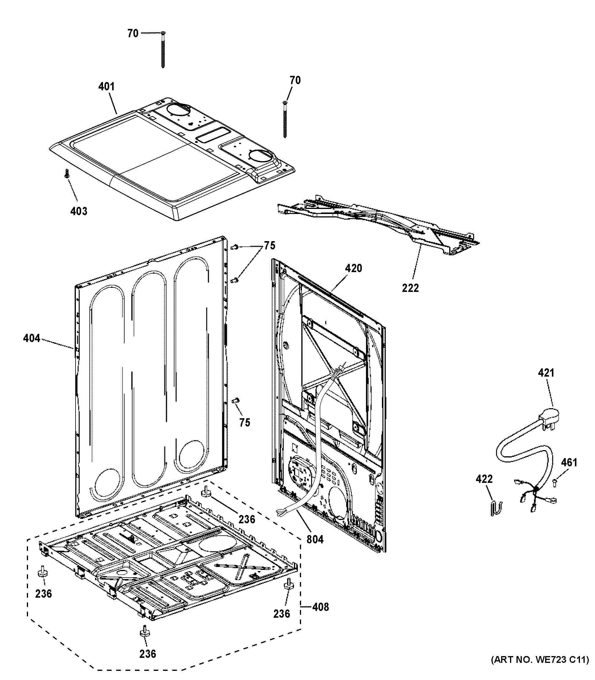 GTD45GASJ3WS CABINET & TOP PANEL