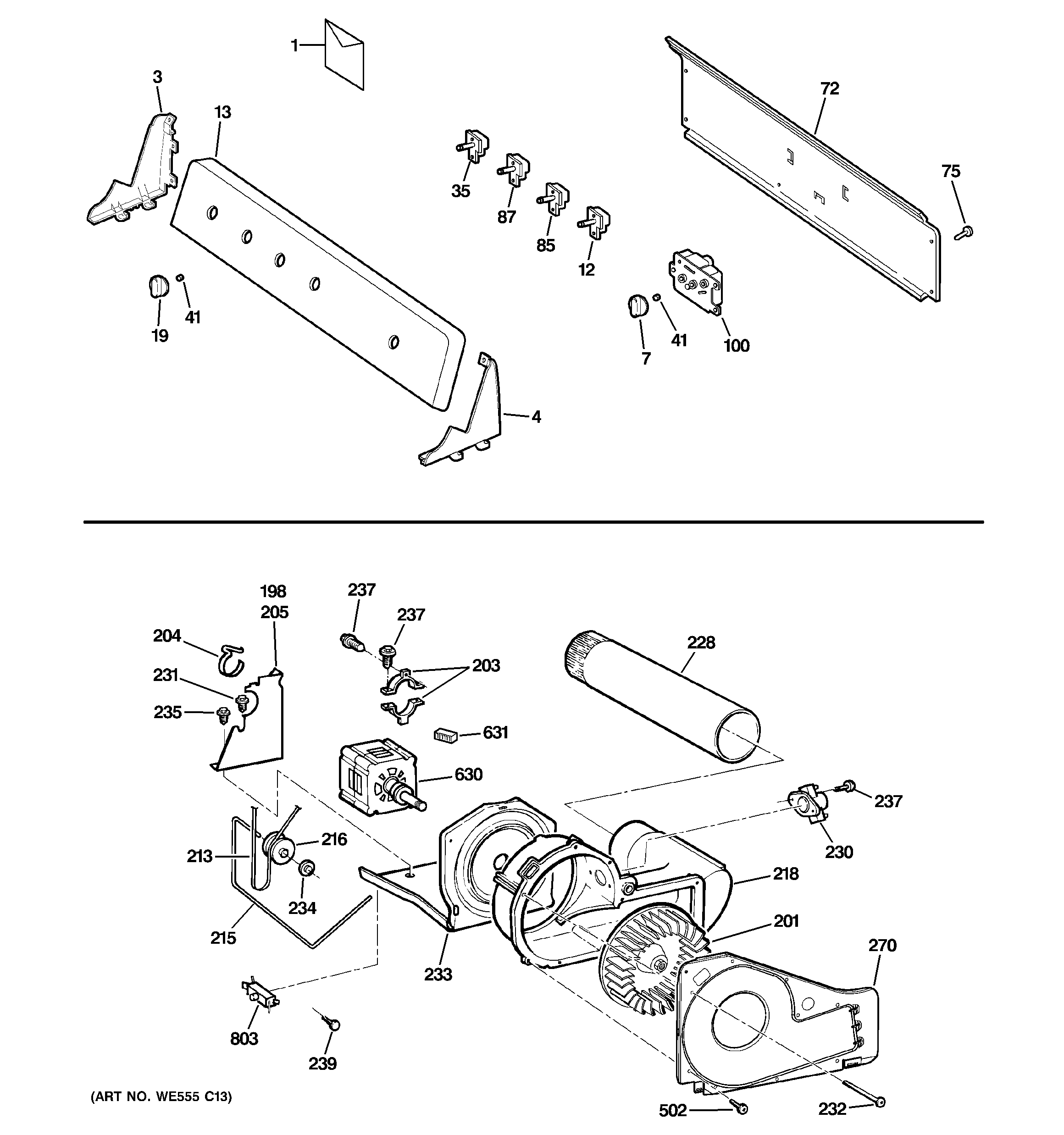 GTDP250GM0WW BACKSPLASH, BLOWER & MOTOR ASSEMBLY