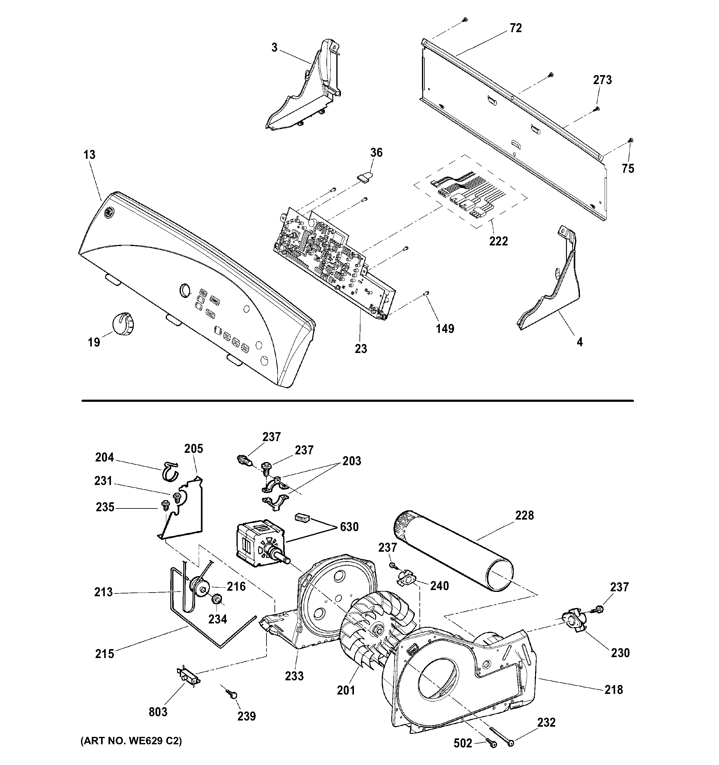 GTDP520GD0WW BACKSPLASH, BLOWER & DRIVE ASSEMBLY