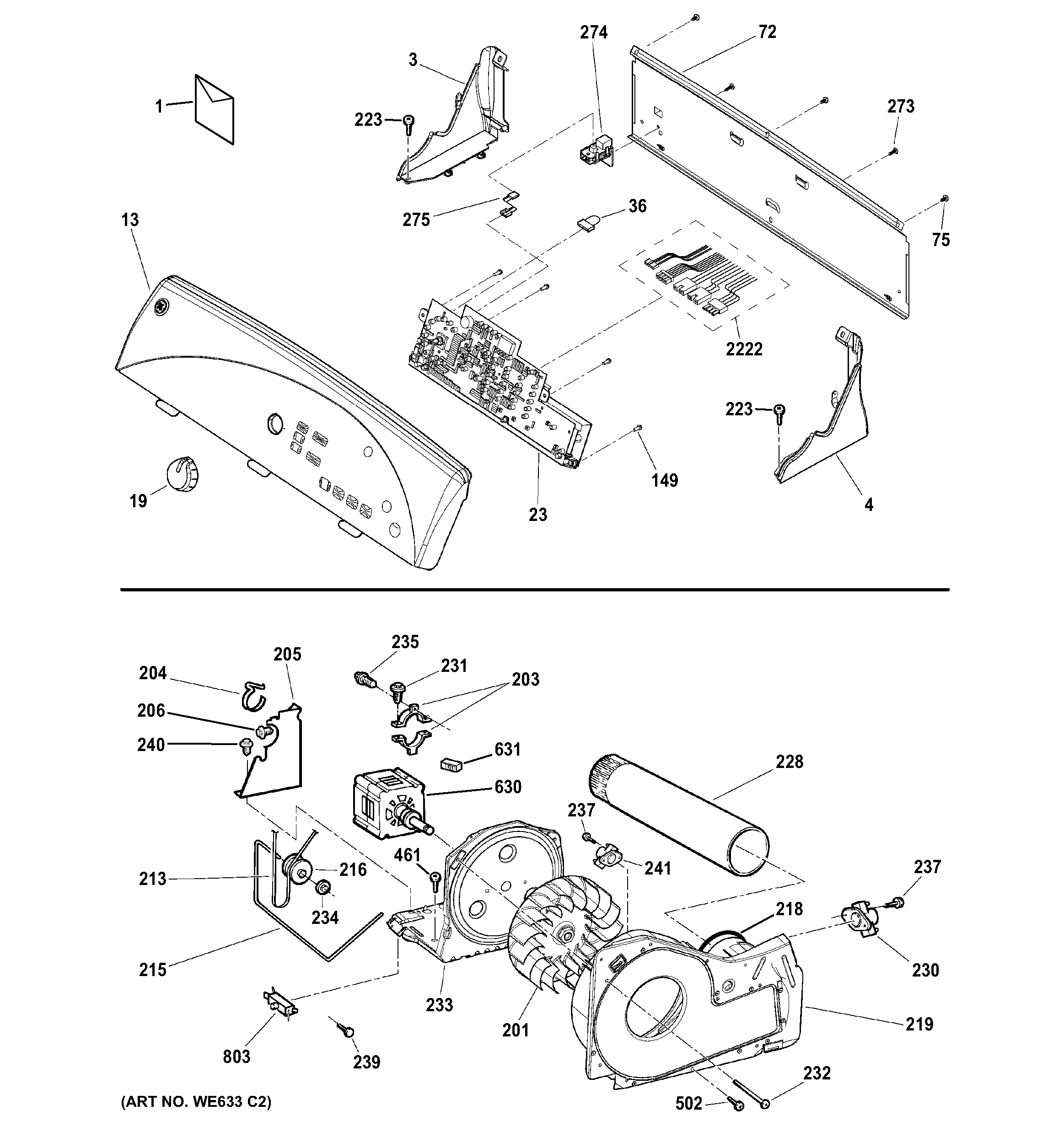 GTDS580GD1WW BACKSPLASH, BLOWER & DRIVE ASSEMBLY
