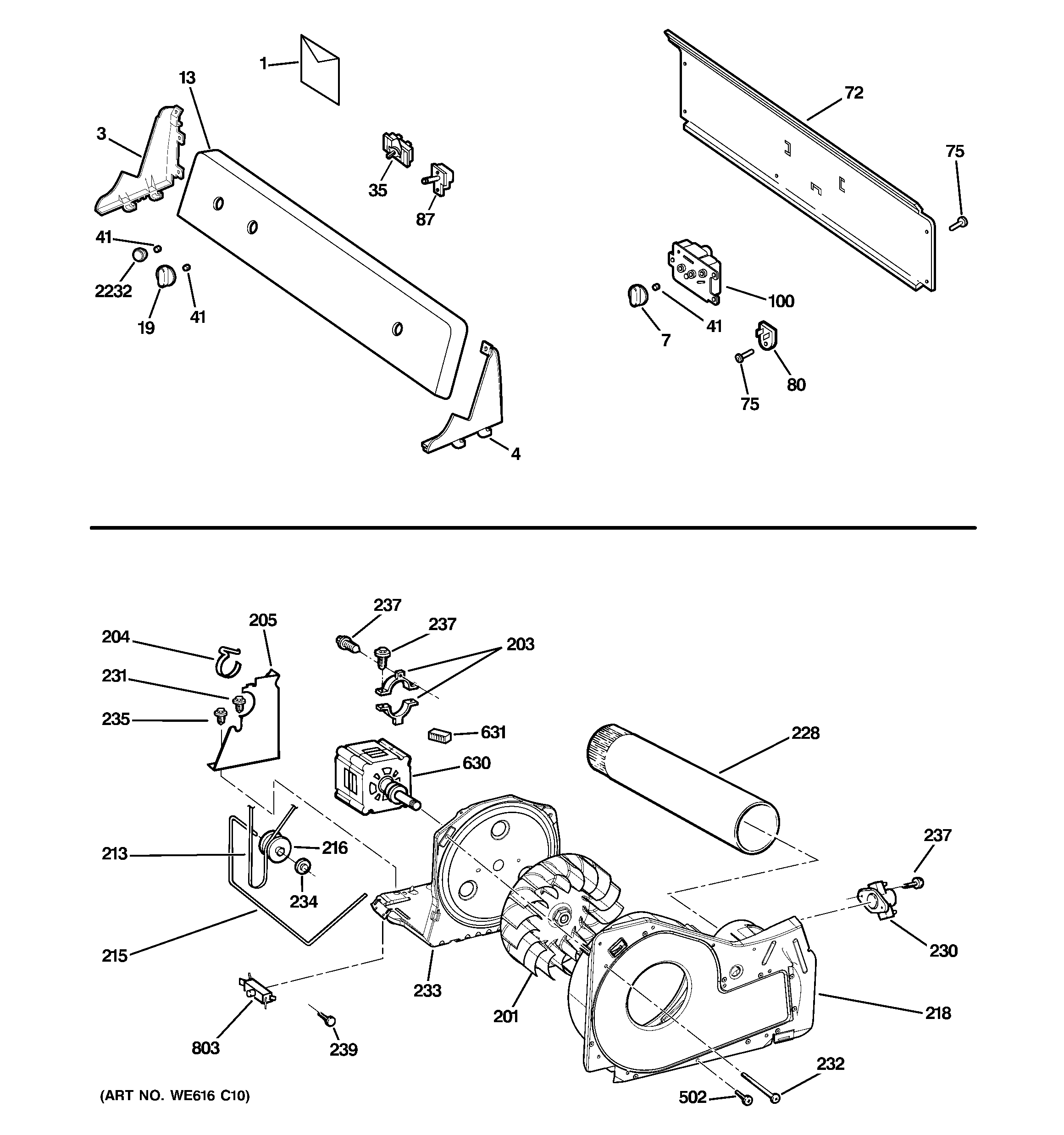 GTDX100EM1WW BACKSPLASH, BLOWER & MOTOR ASSEMBLY