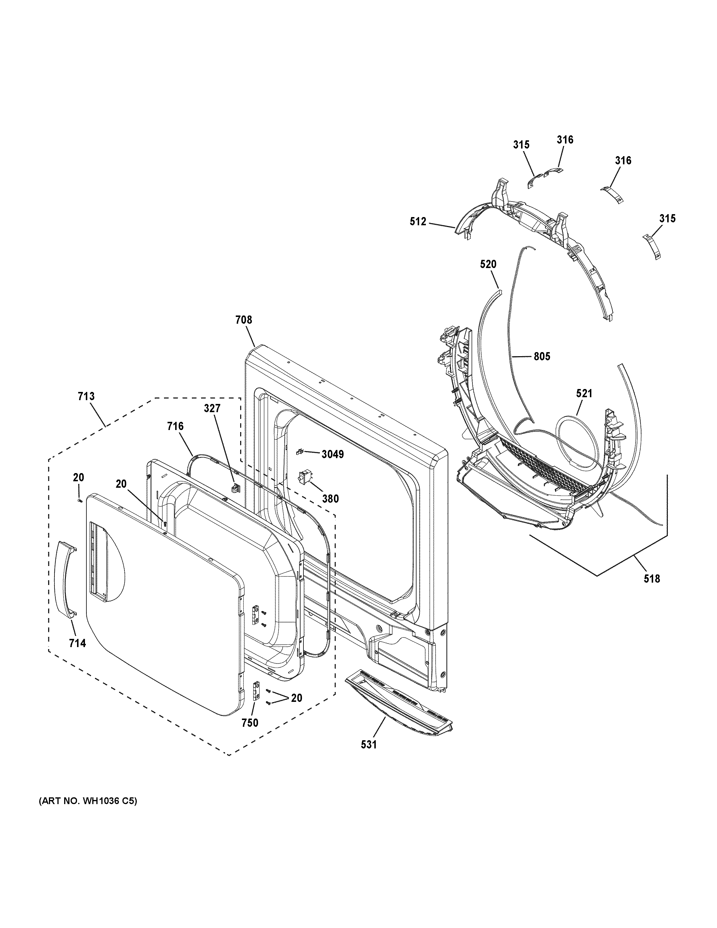 GUD27GSSM0WW DRYER FRONT PANEL & DOOR