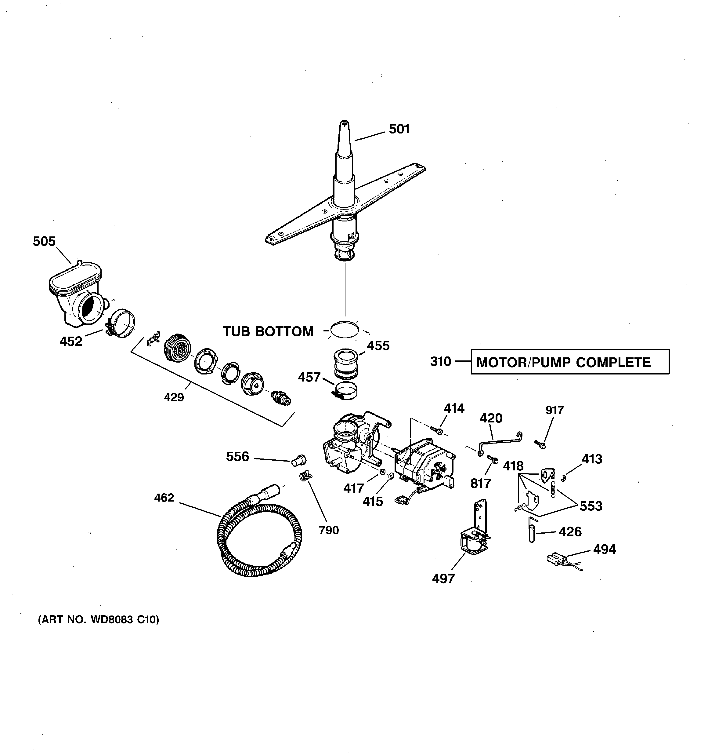 501WD22X154 GE Dishwasher Wash Arm Assembly