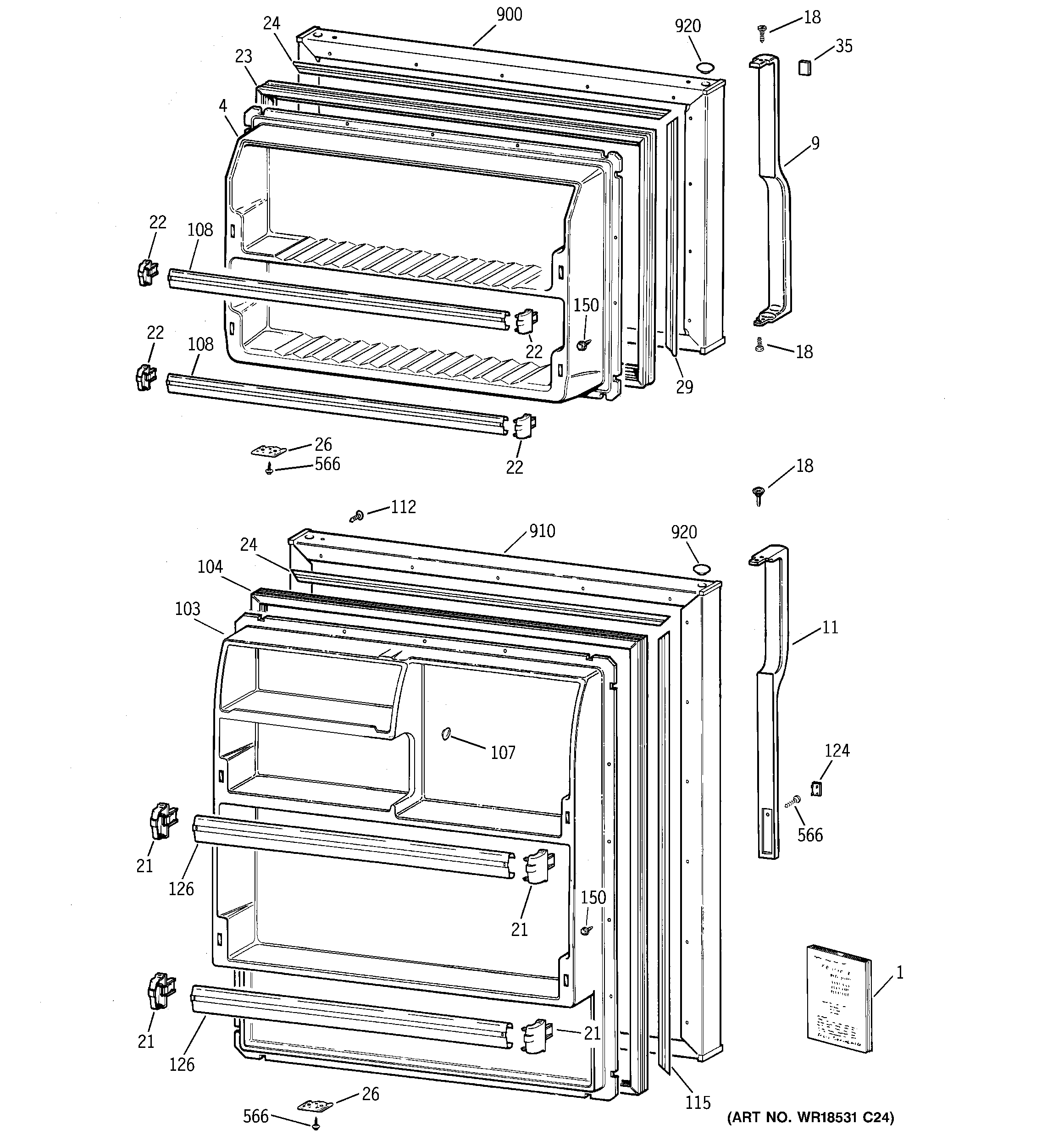 WR12X10966 GE Refrigerator Handle Door Assembly