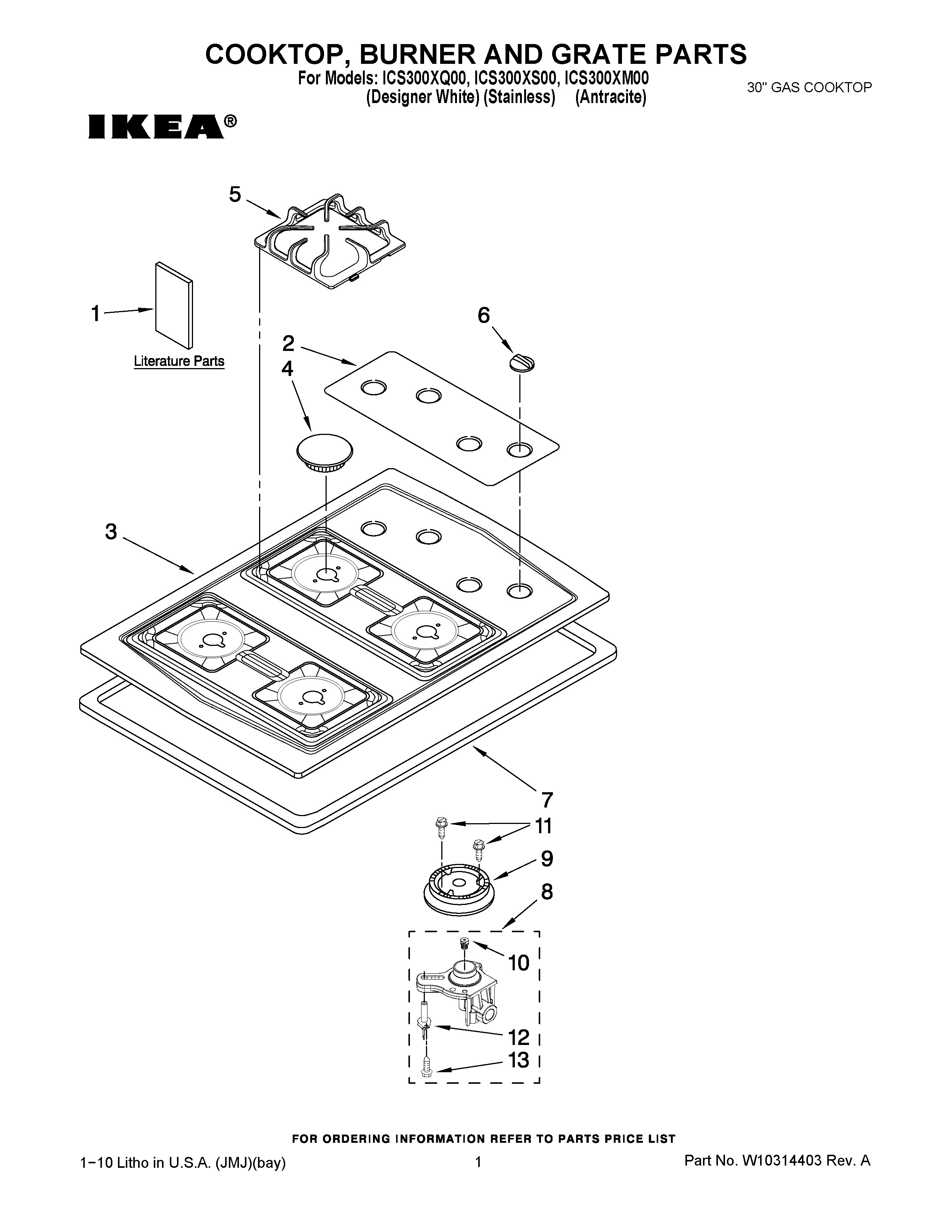 ICS300XQ00 01 – COOKTOP, BURNER AND GRATE PARTS