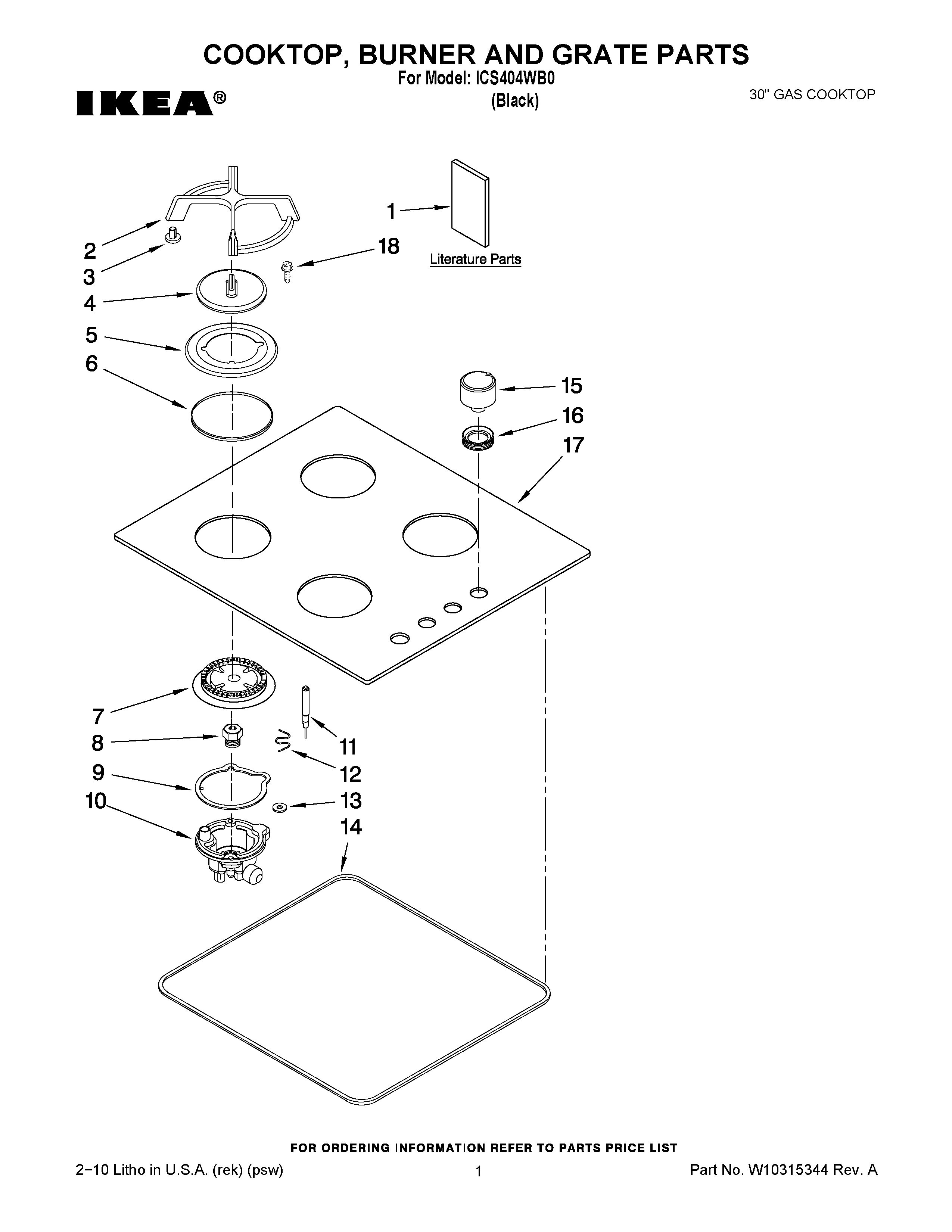 ICS404WB0 01 – COOKTOP, BURNER AND GRATE PARTS