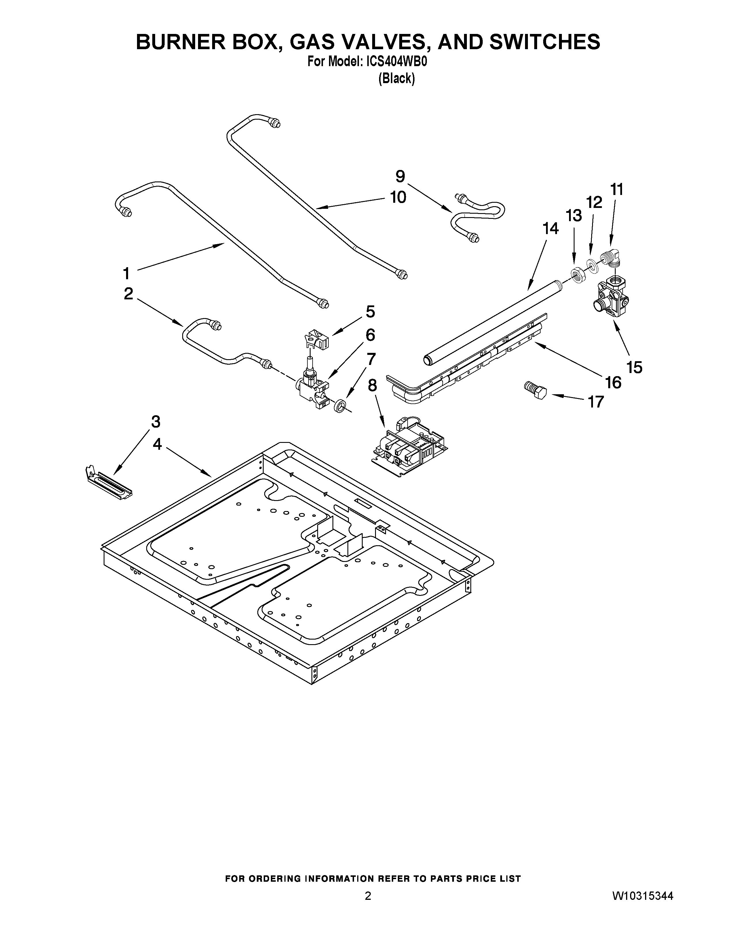 ICS404WB0 02 – BURNER BOX, GAS VALVES, AND SWITCHES