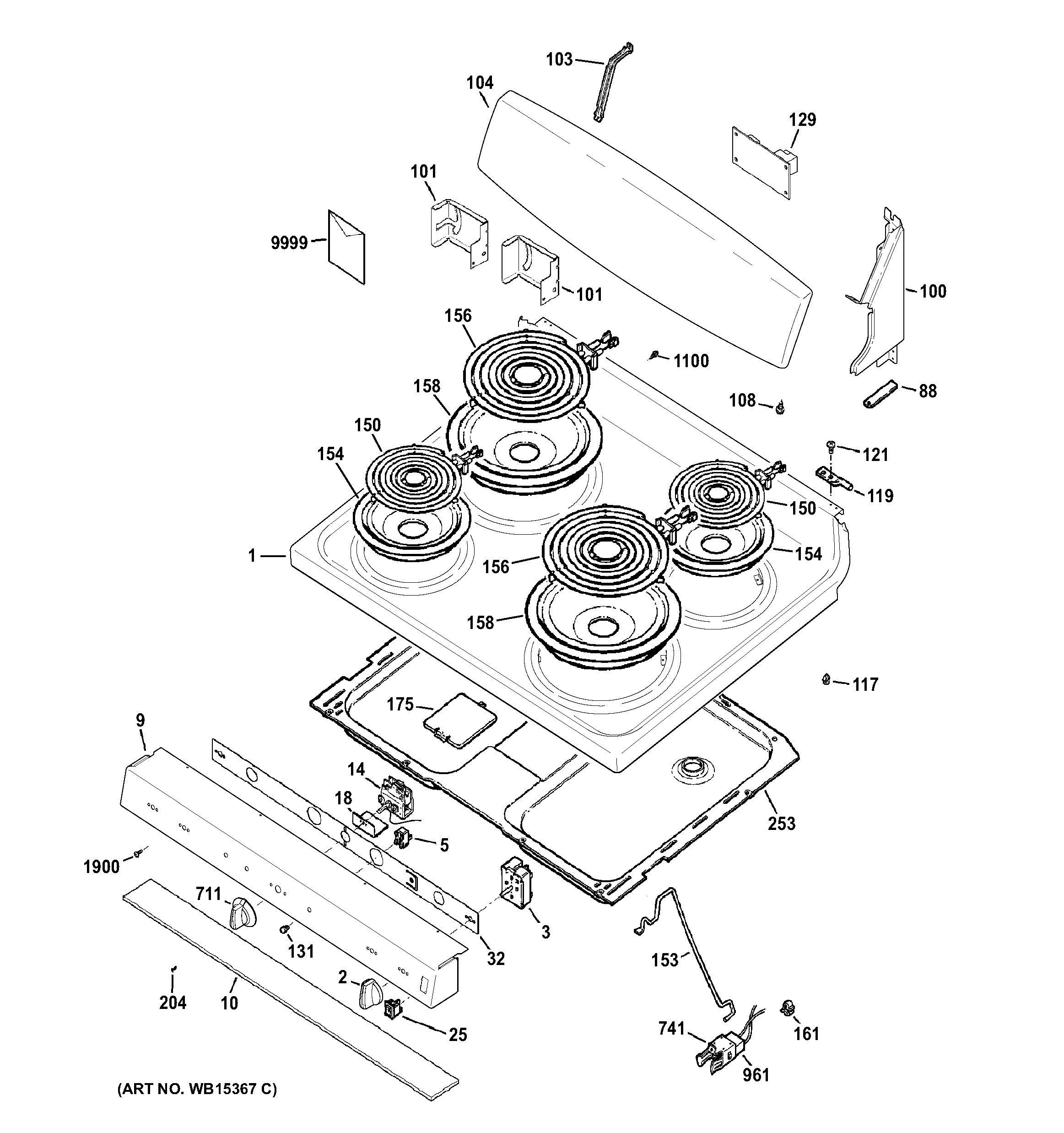 JB450RF1SS CONTROL PANEL & COOKTOP