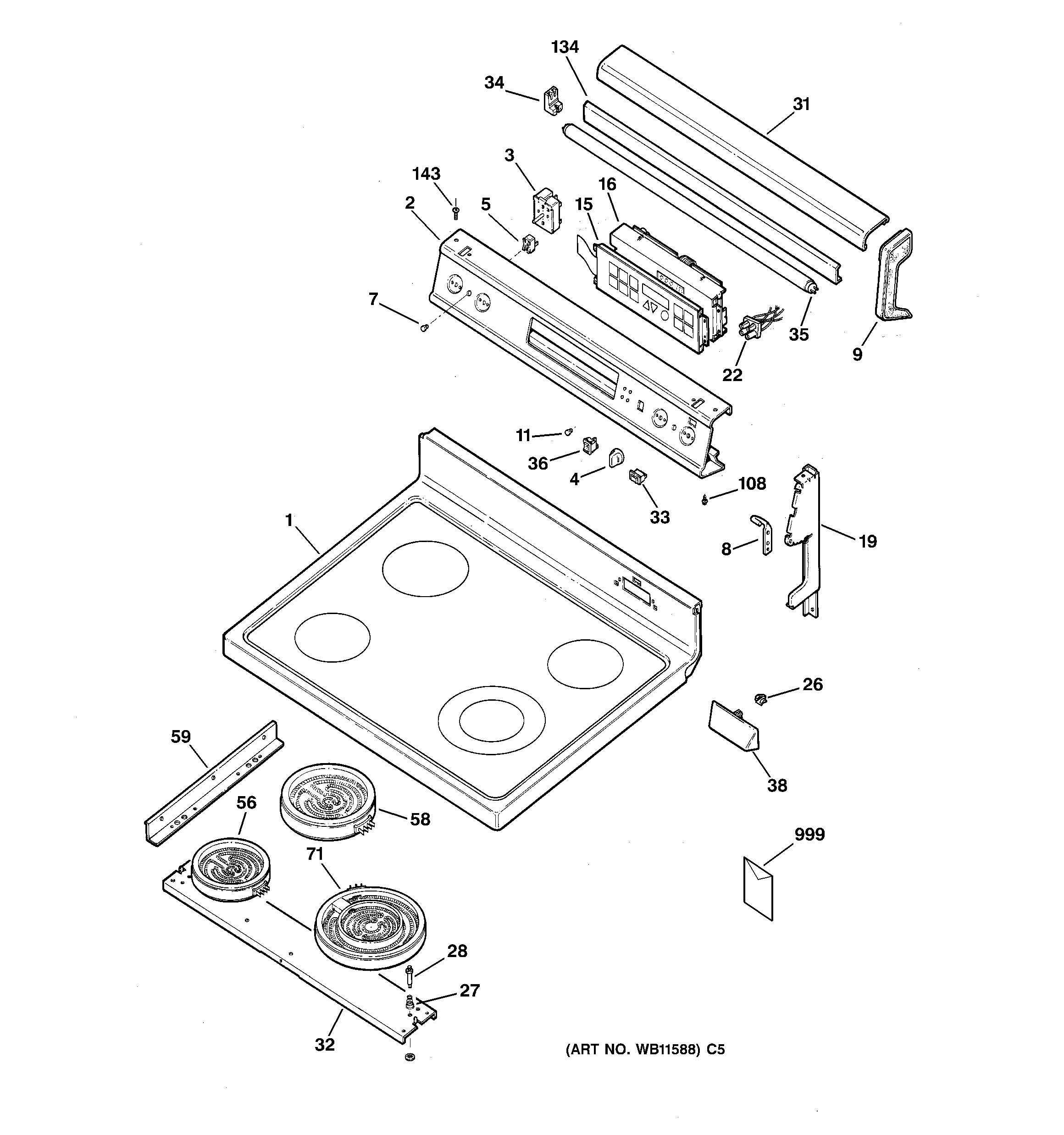JB940BY4 CONTROL PANEL & COOKTOP
