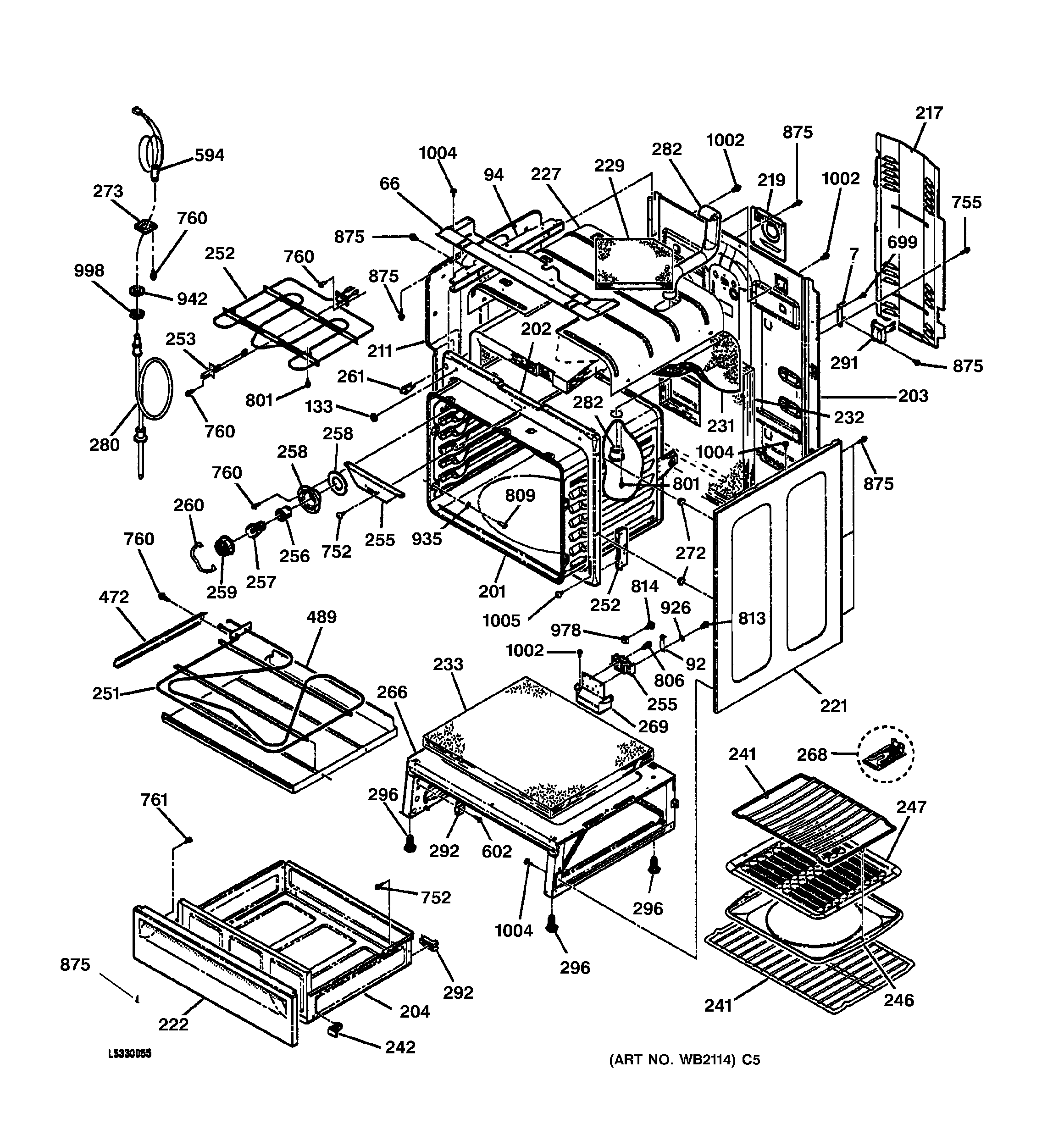 JB960TB2WW BODY & DRAWER PARTS