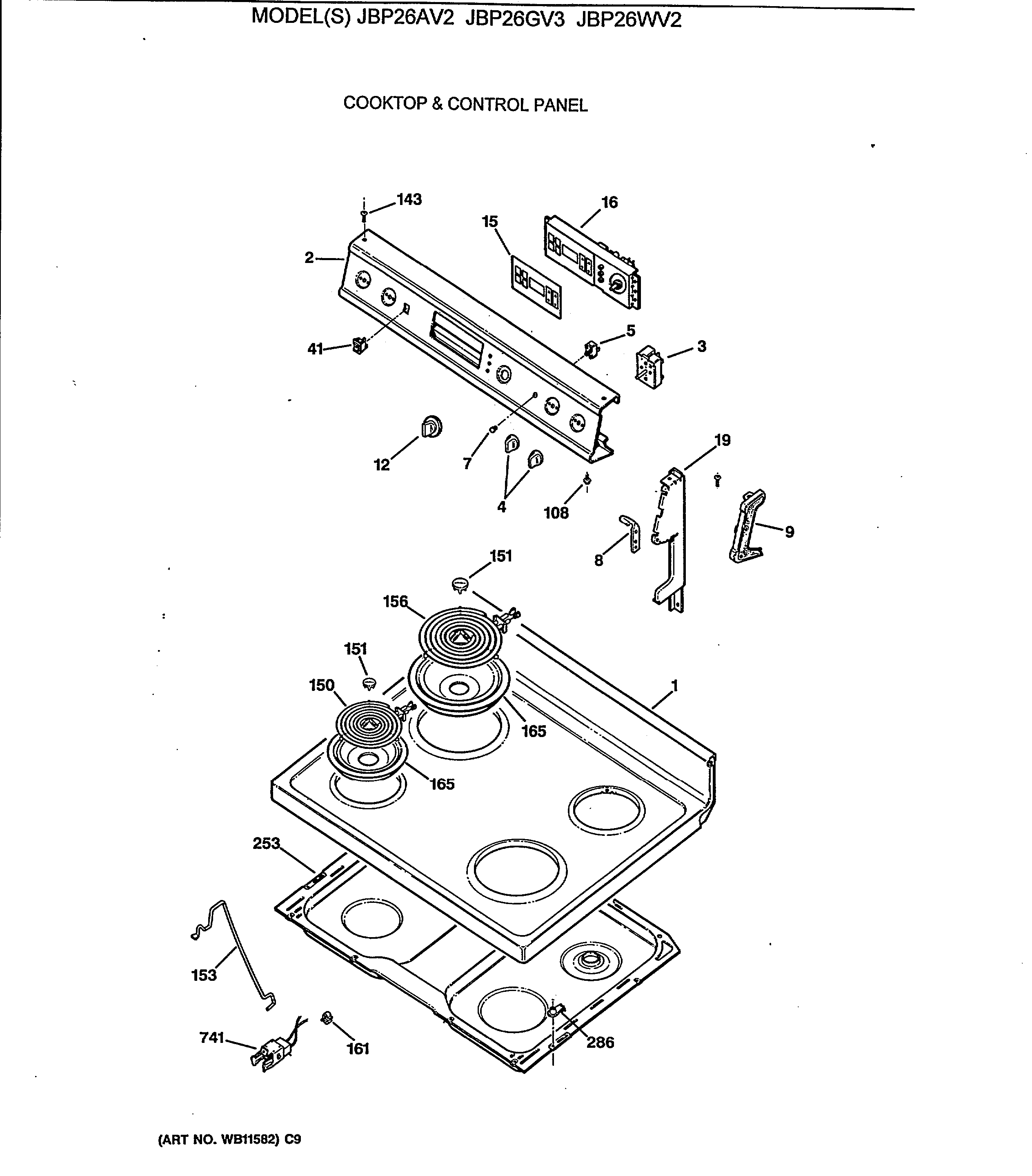 JBP26GV3 COOKTOP & CONTROL PANEL