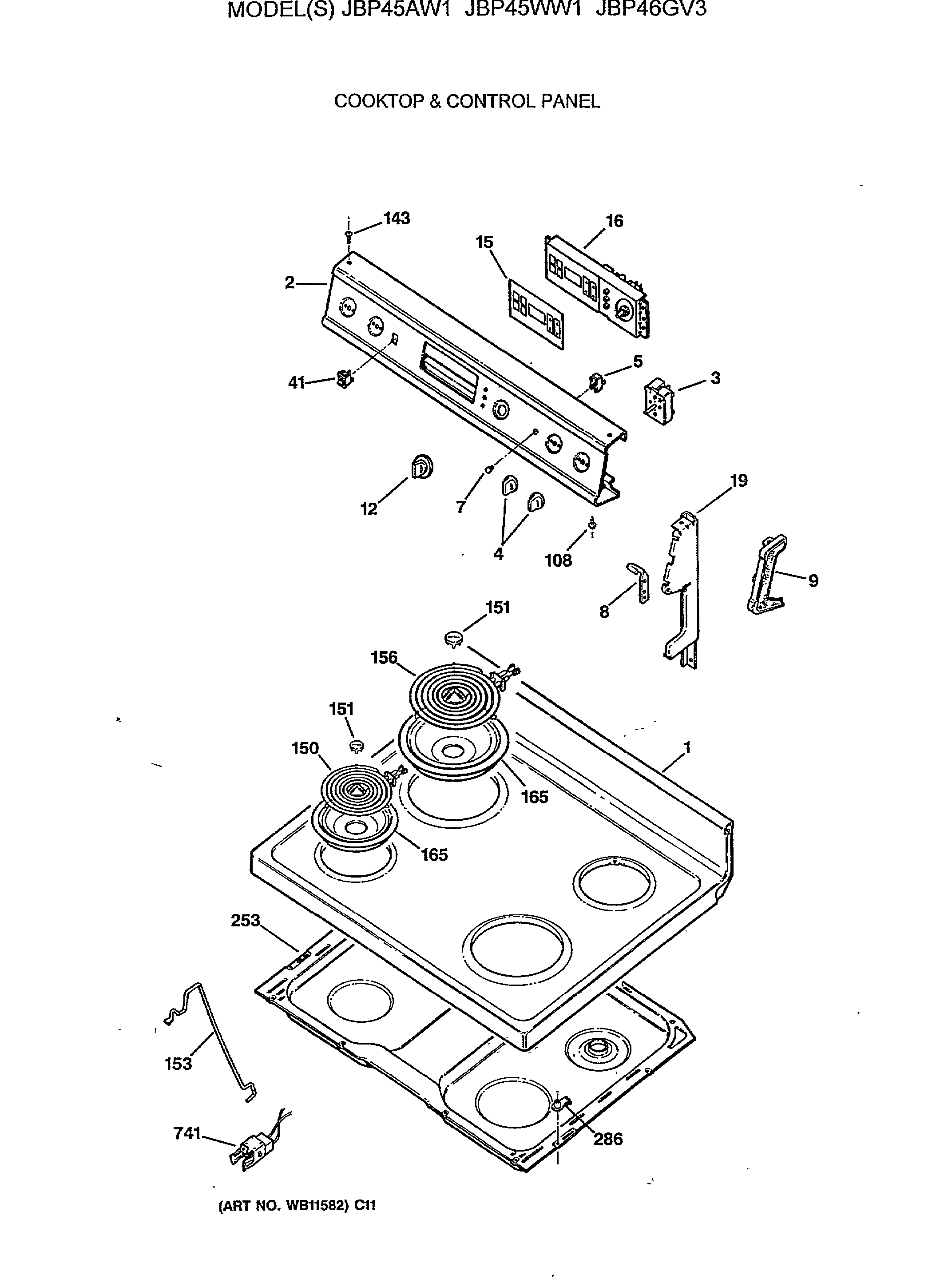 JBP45AW1 COOKTOP & CONTROL PANEL