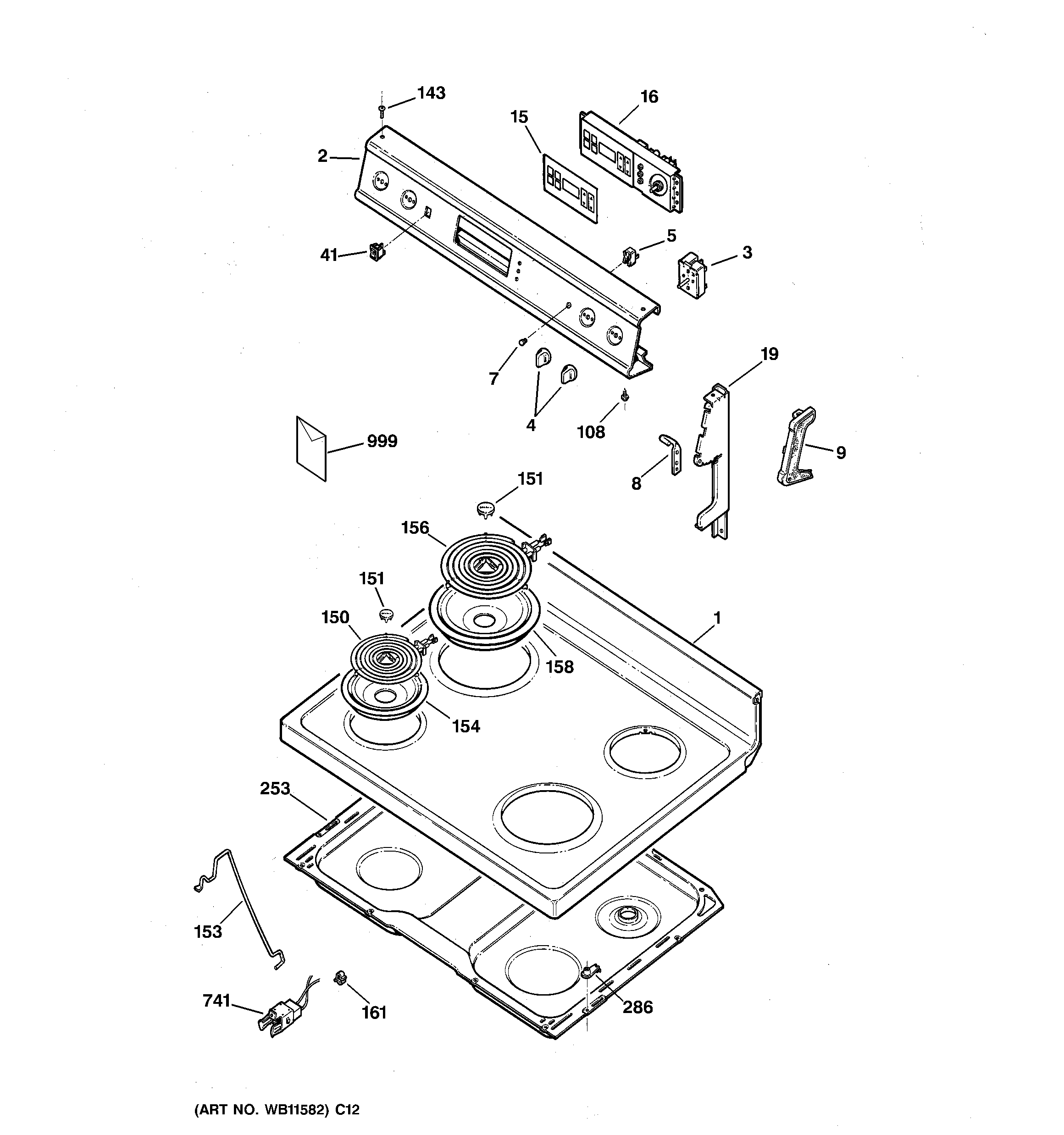 JBP48WA1 CONTROL PANEL & COOKTOP