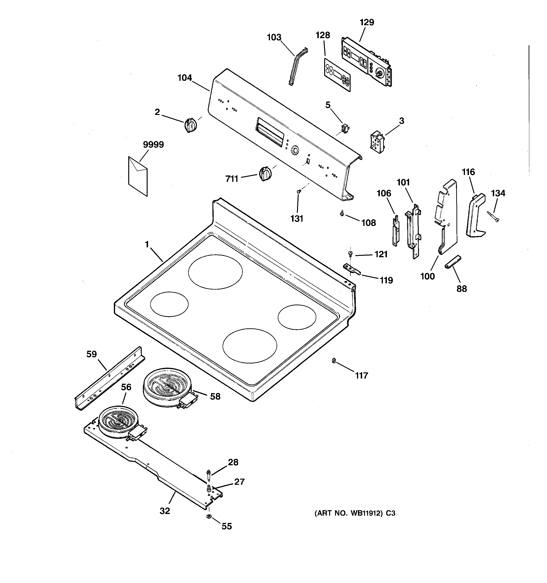JBP60BC1WH CONTROLS & COOKTOP