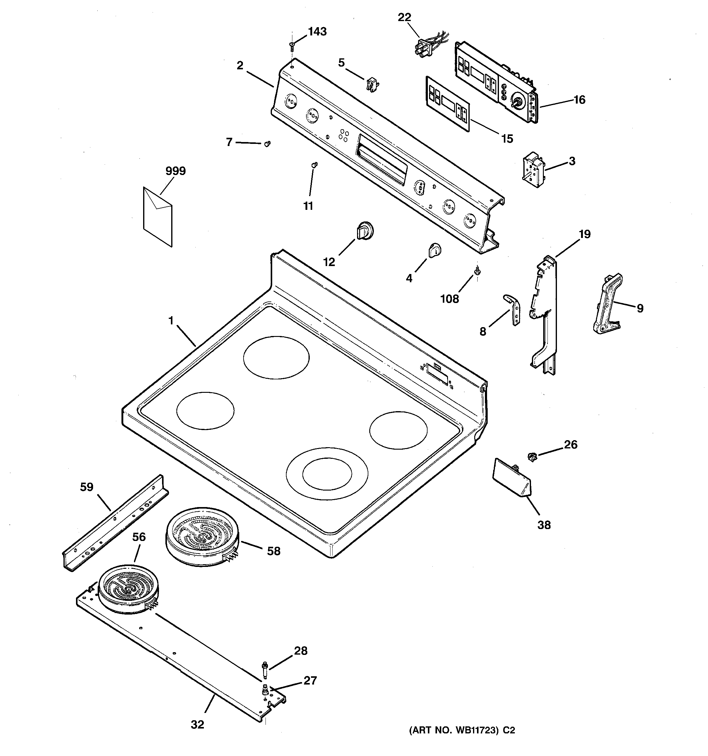 JBP61DA2WH CONTROL PANEL & COOKTOP