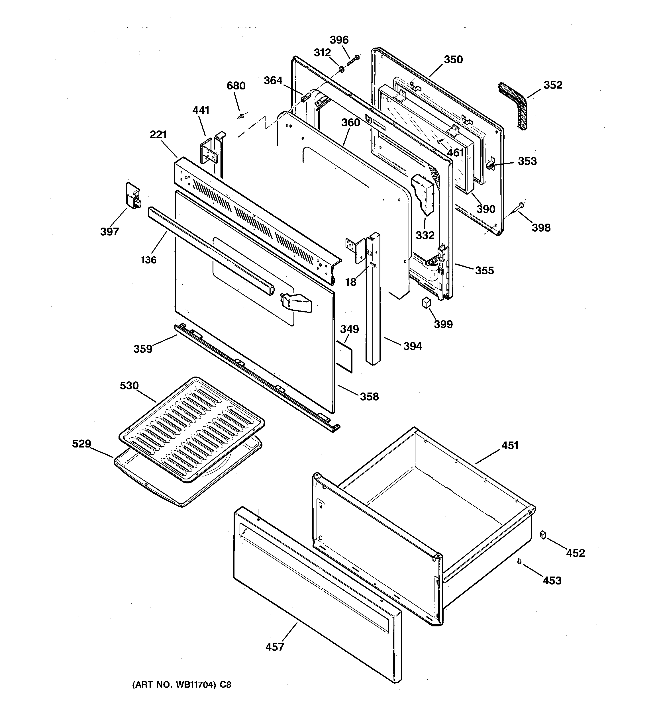 JBP61WB1WW DOOR & DRAWER PARTS
