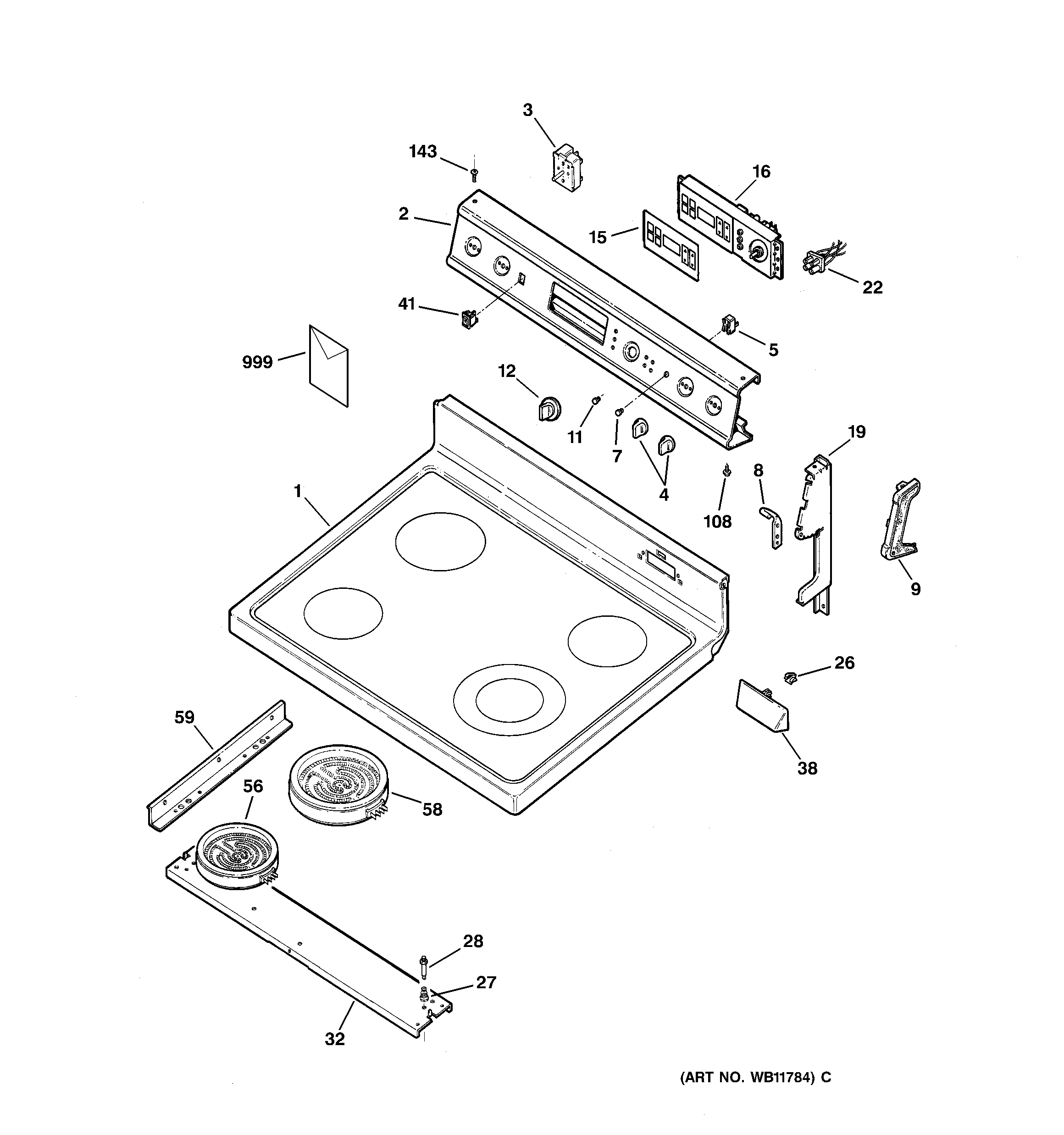 JBP75WY3 CONTROL PANEL & COOKTOP